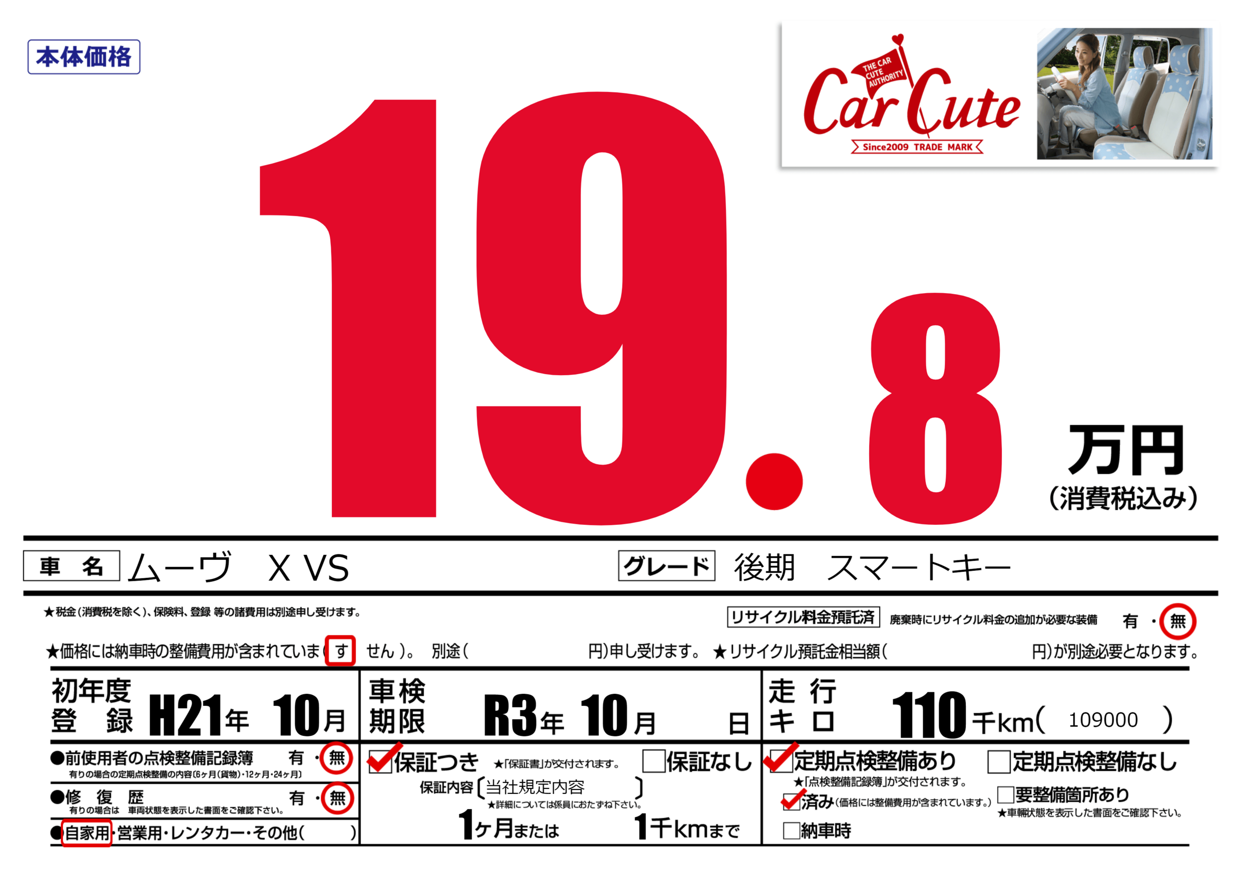 | 定期点検整備 | 定期点検整備あり 定期点検整備済み | ||