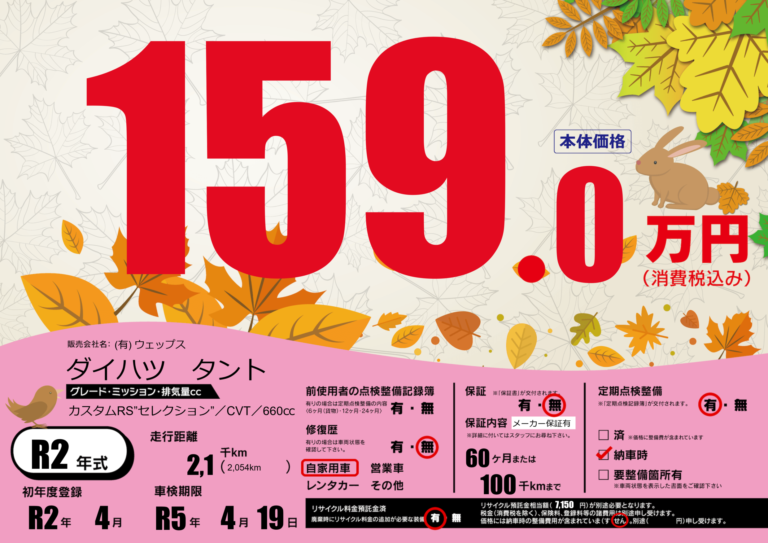 なし | 車検制限 | R5年4月19月 |