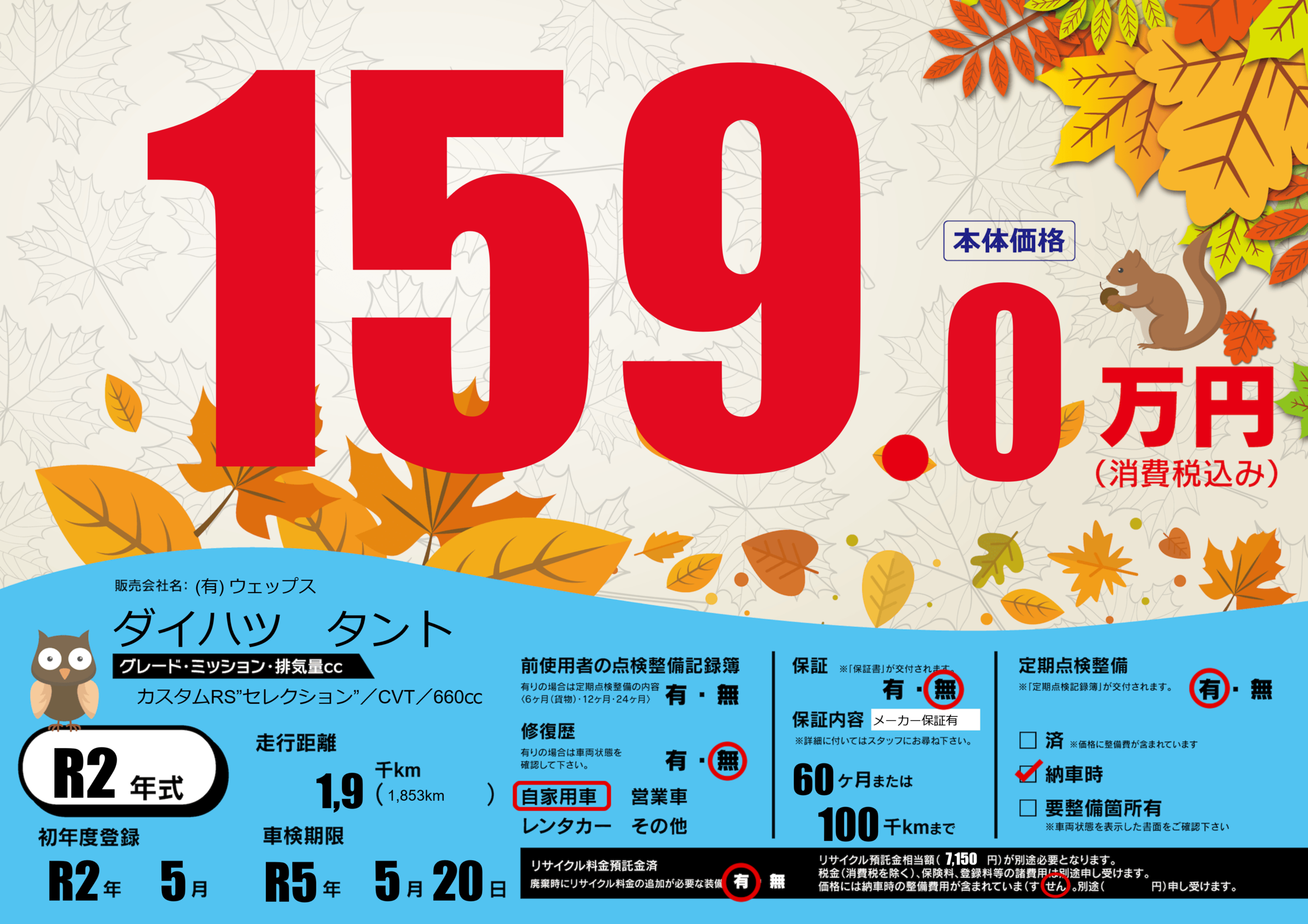 なし | 車検制限 | R5年5月20月 |