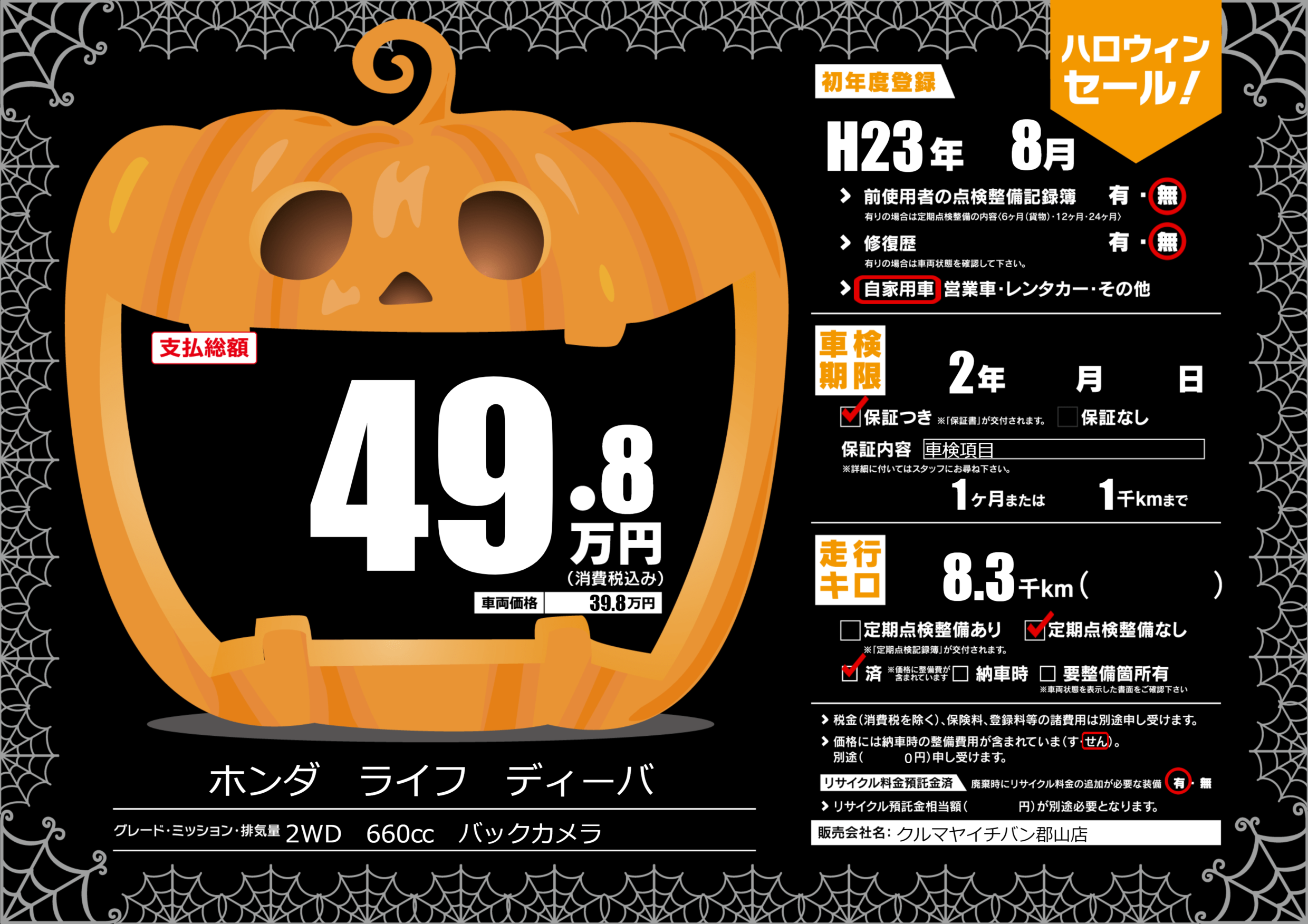 | 定期点検整備 | 定期点検整備なし 定期点検整備済み | ||
