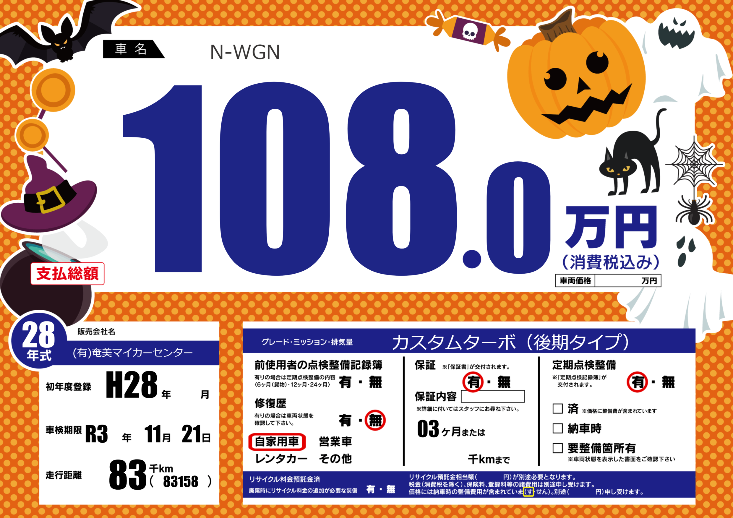 | 走行キロ | 8.3万km | 初年度登録 | H28年---月 |