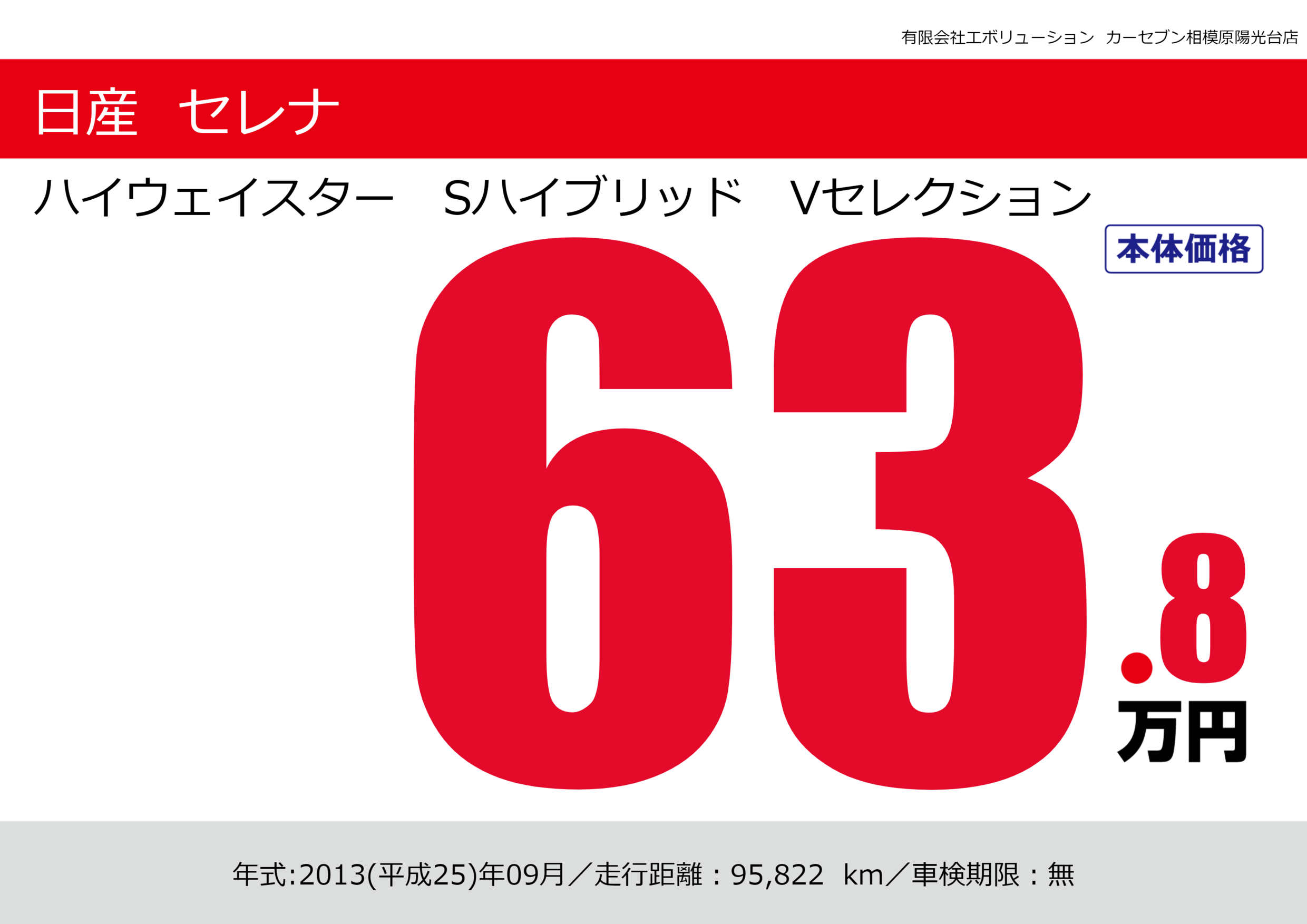 | 車名 | 日産 セレナ | グレード ミッション 排気量 |