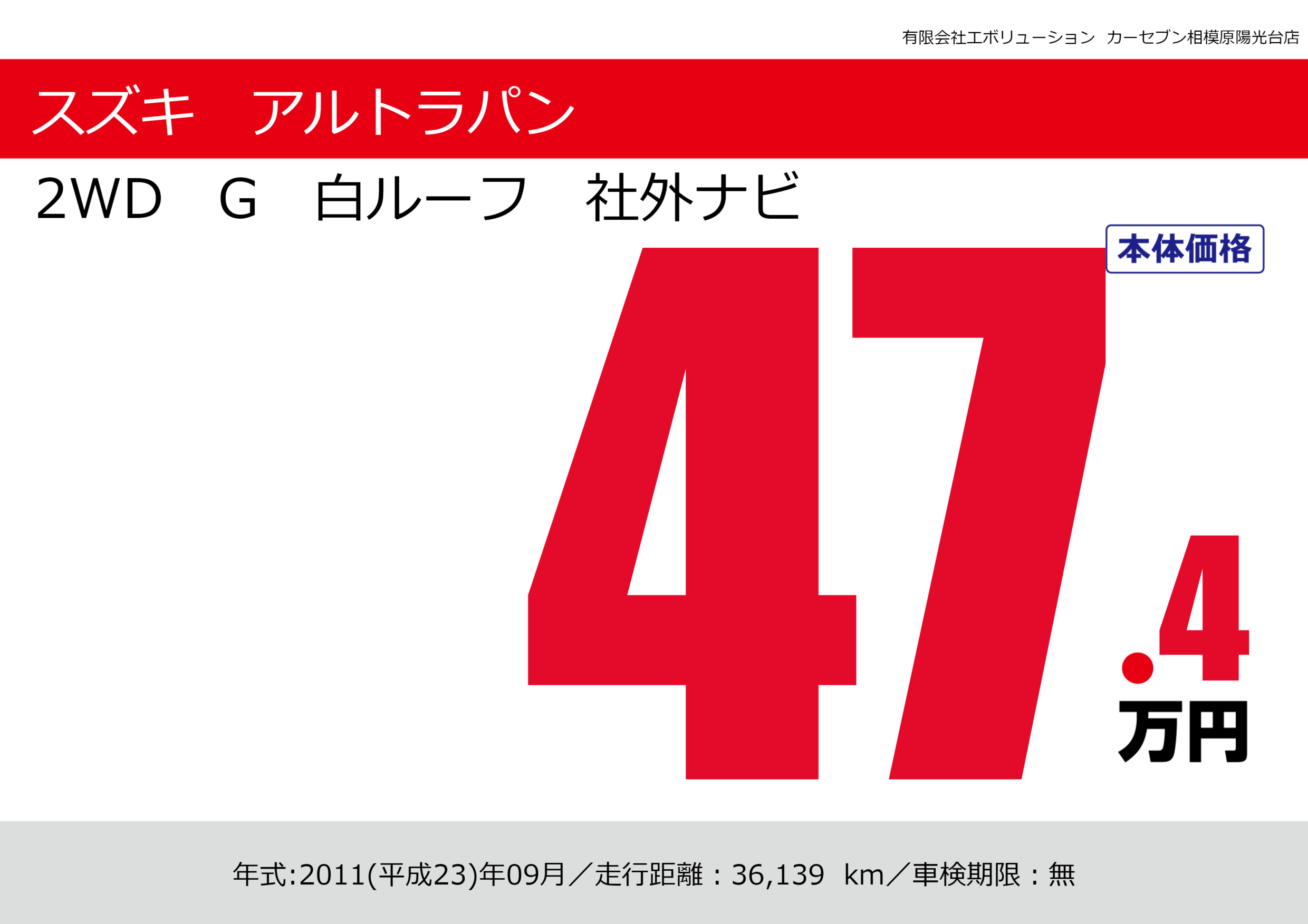 | 車名 | スズキ アルトラパン | グレード ミッション 排気量 |