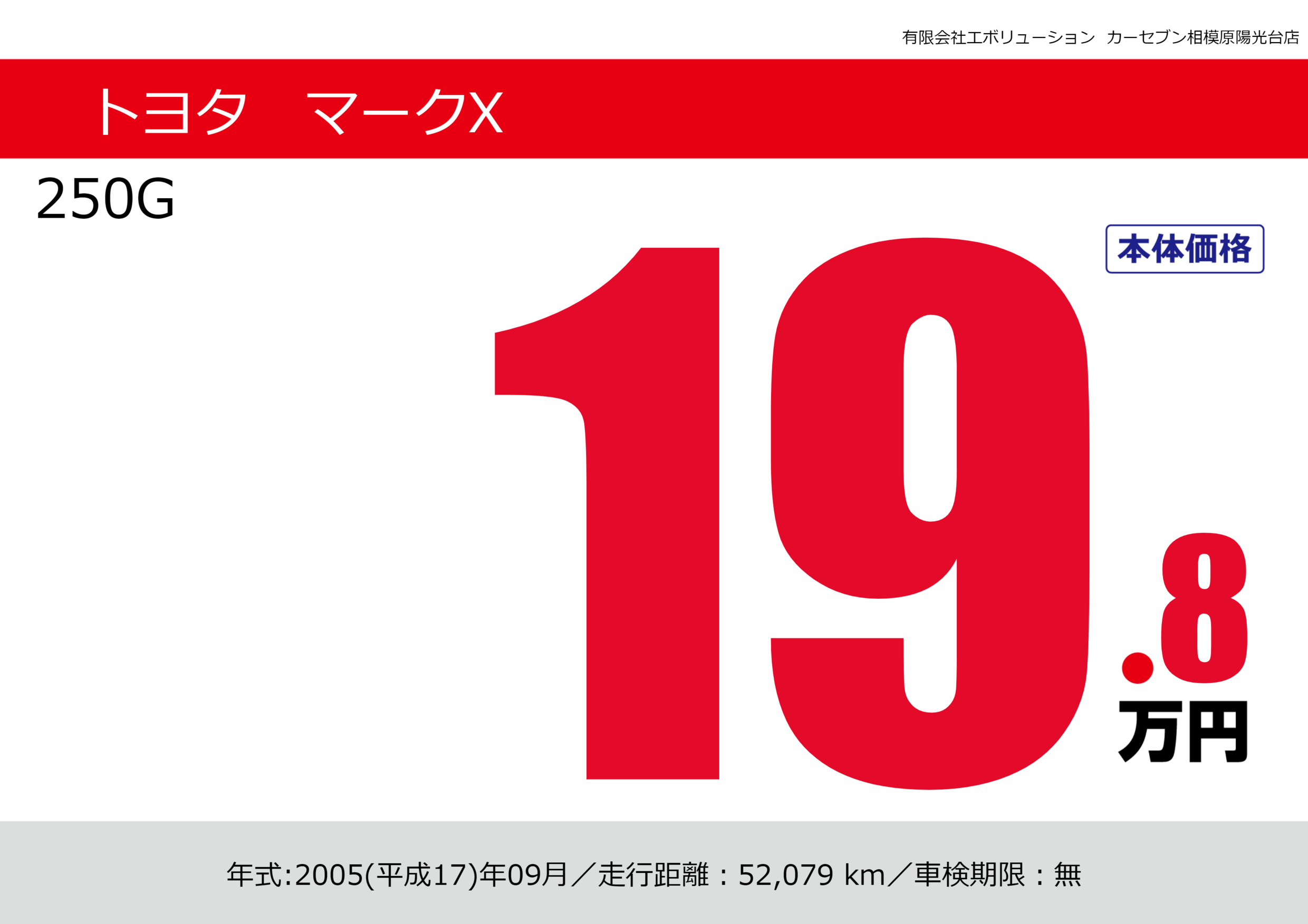 | 車名 | トヨタ マークX | グレード ミッション 排気量 |