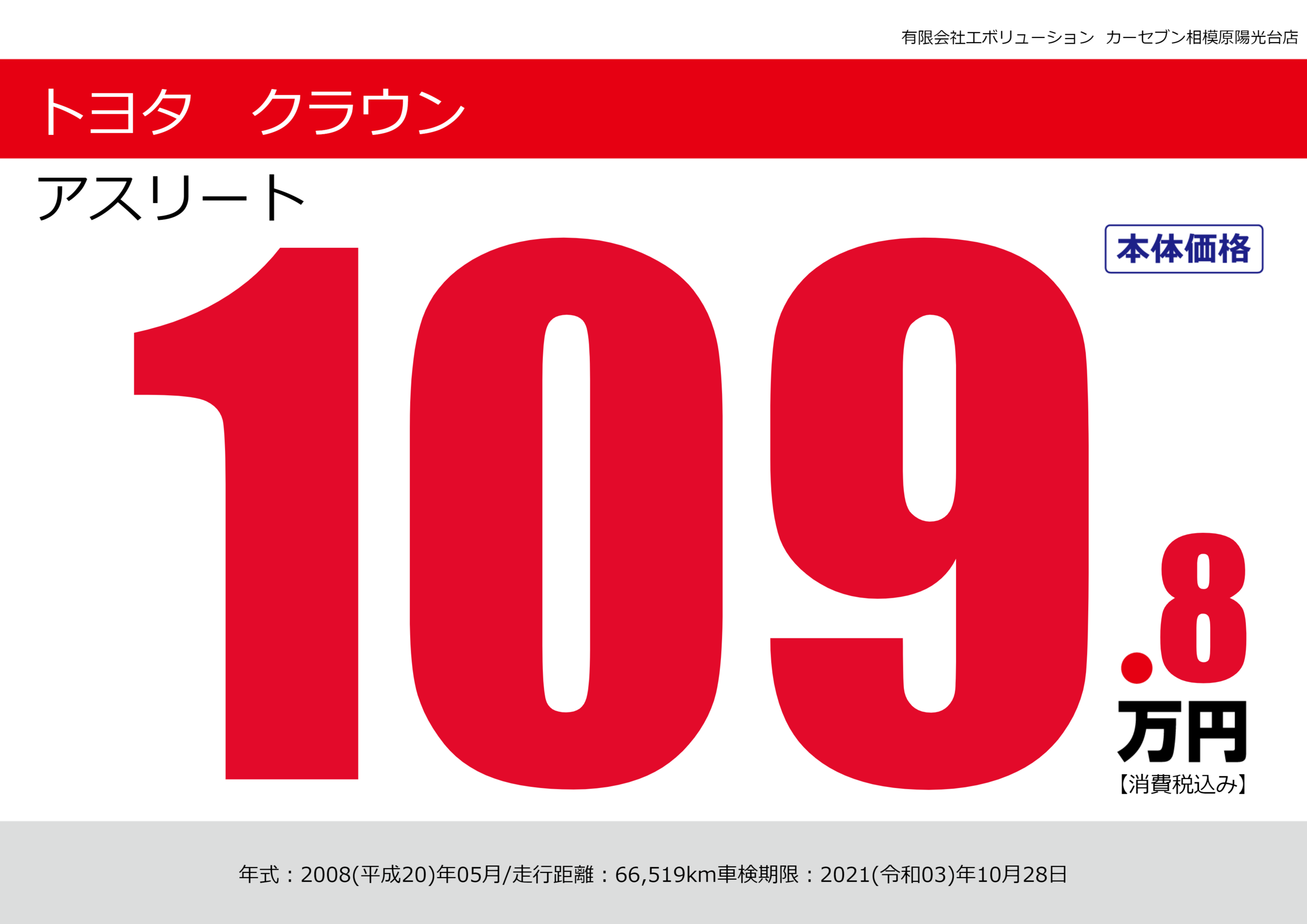| 車名 | トヨタ クラウン | グレード ミッション 排気量 |