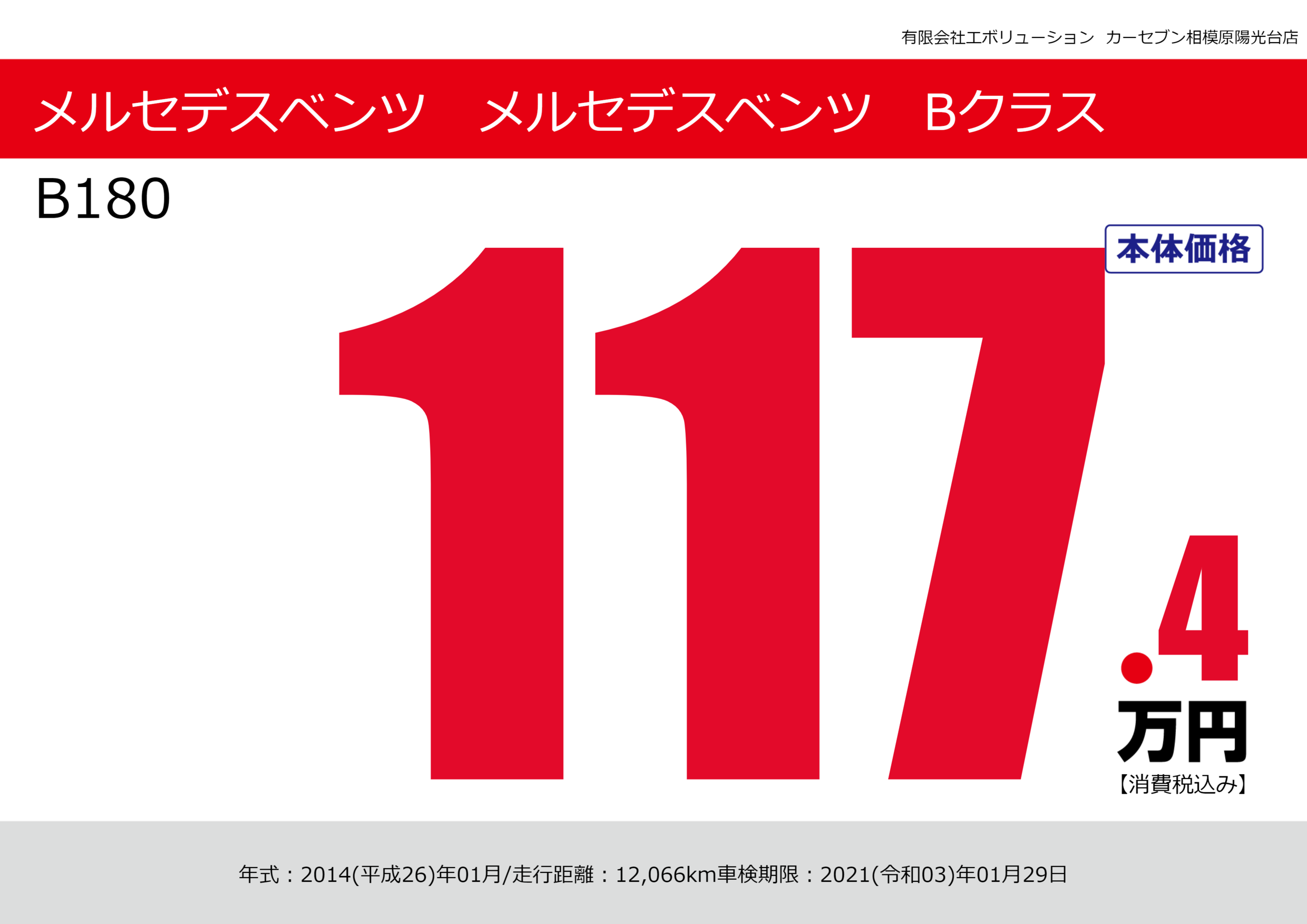 | 車名 | メルセデスベンツ メルセデスベンツ Bクラス | グレード ミッション 排気量 |