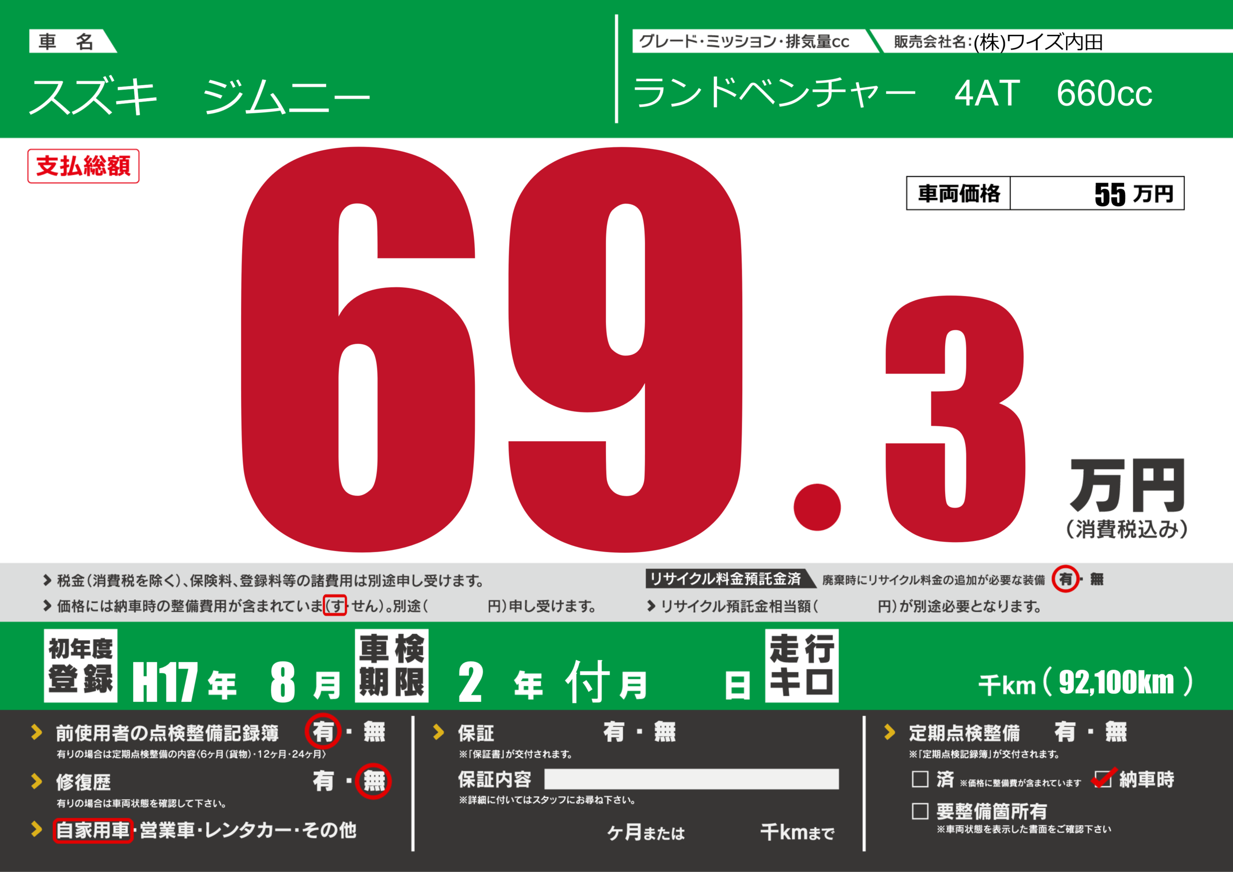 | 定期点検整備 | 納車時あり | ||