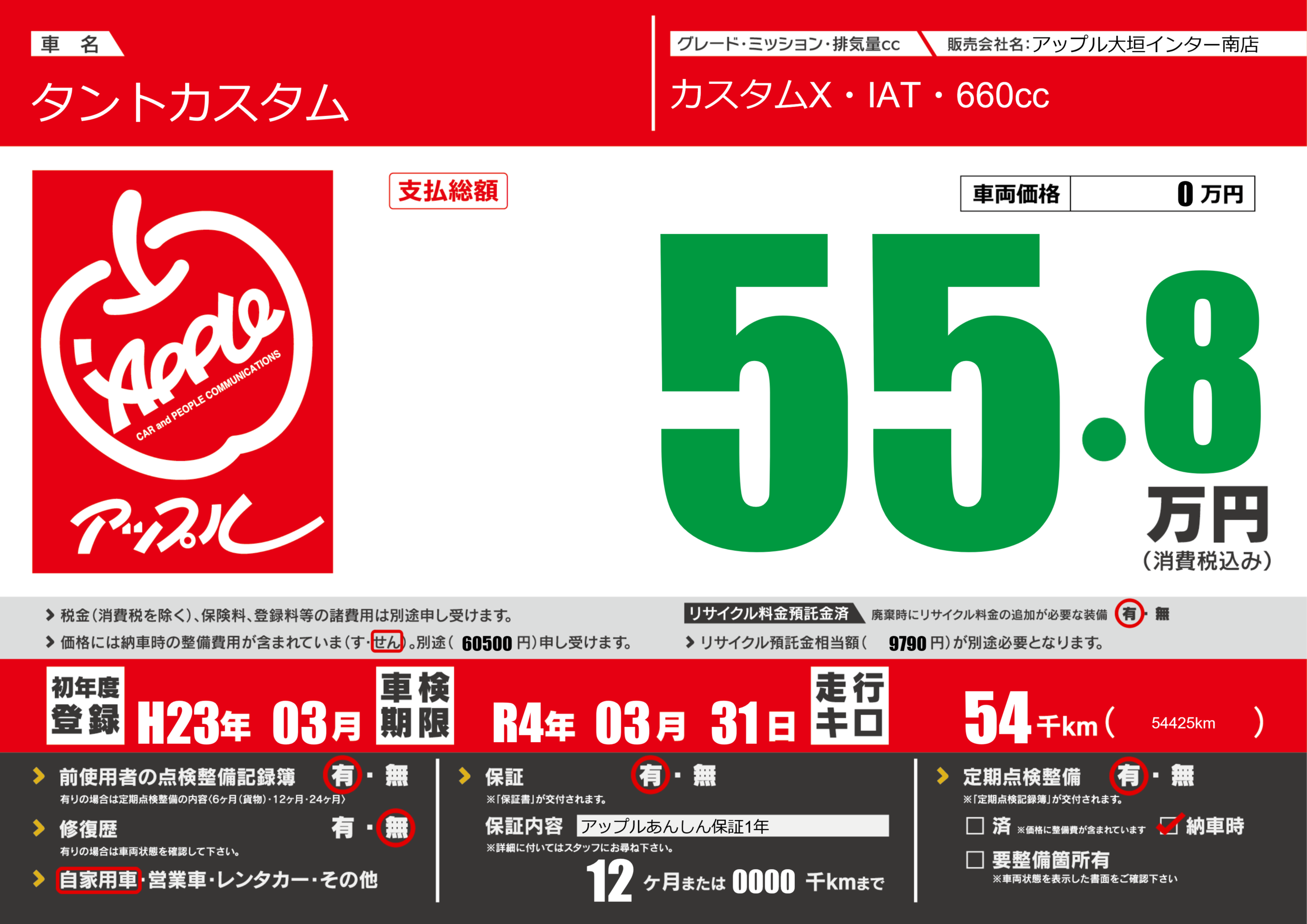 | 車名 | タントカスタム | グレード ミッション 排気量 |