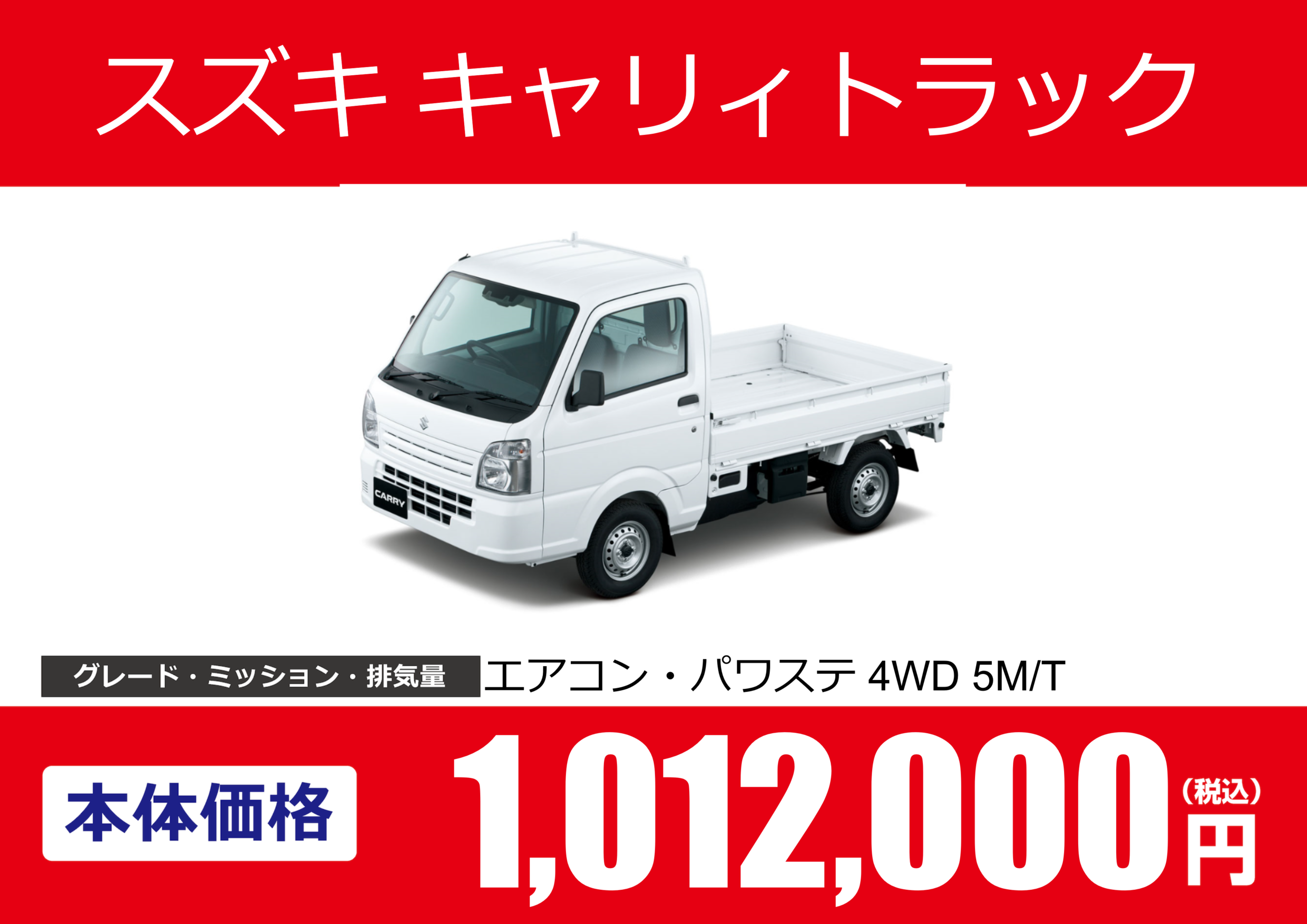 | 車名 | スズキ キャリィトラック | グレード ミッション 排気量 |
