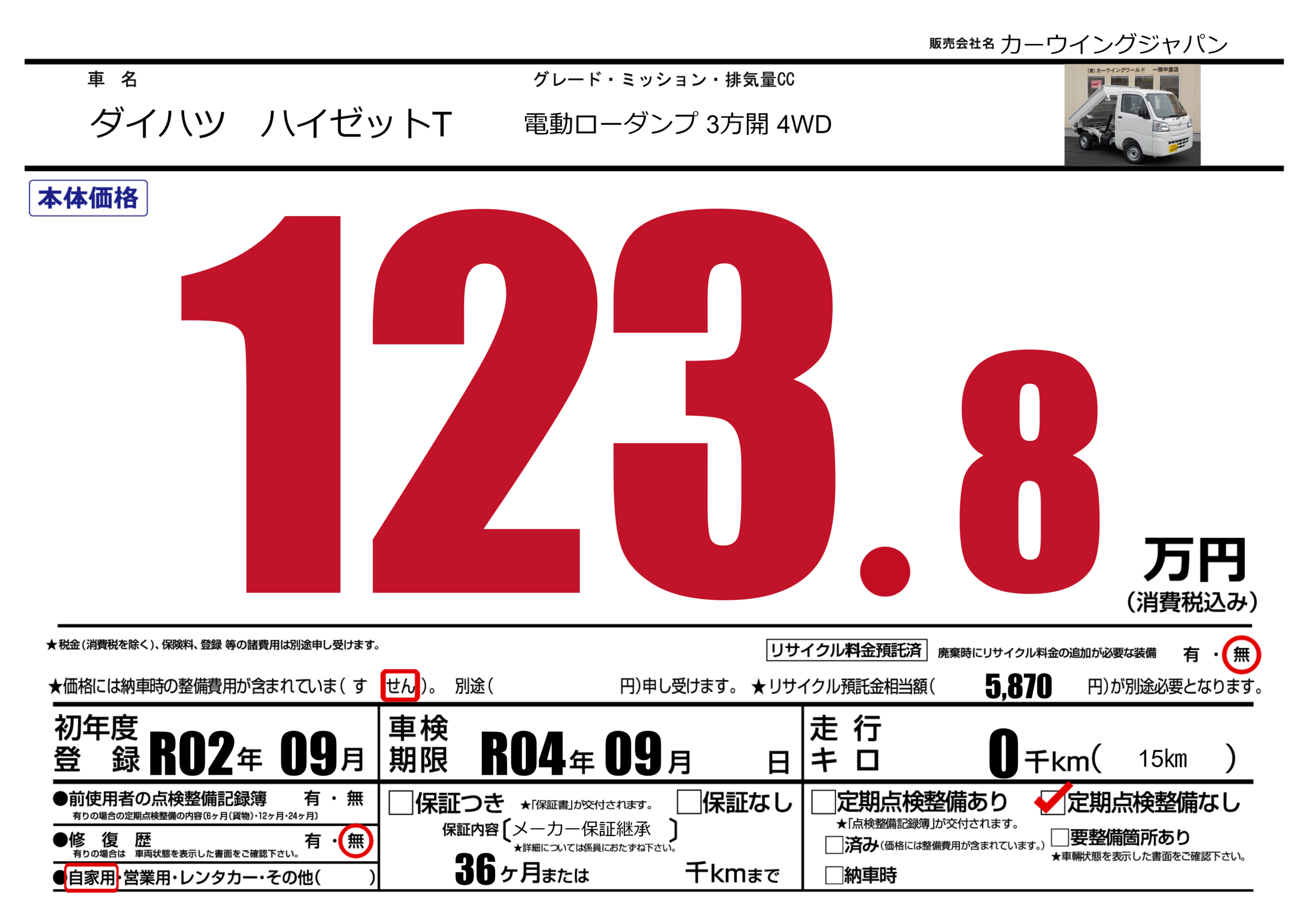 なし | 車検制限 | R04年09月---月 |