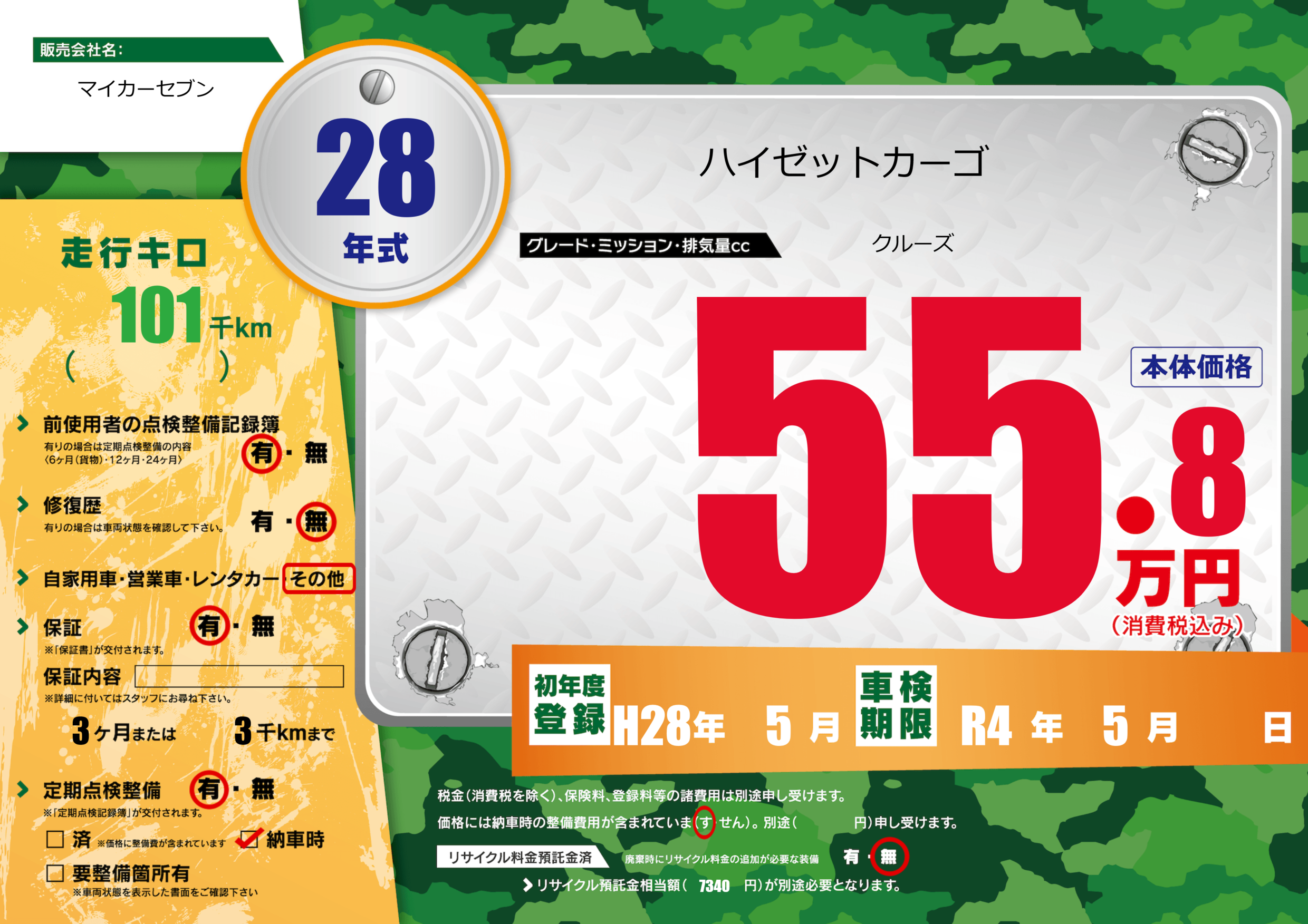 保証付き 保証内容(---) 3ヶ月または(3)千kmまで |