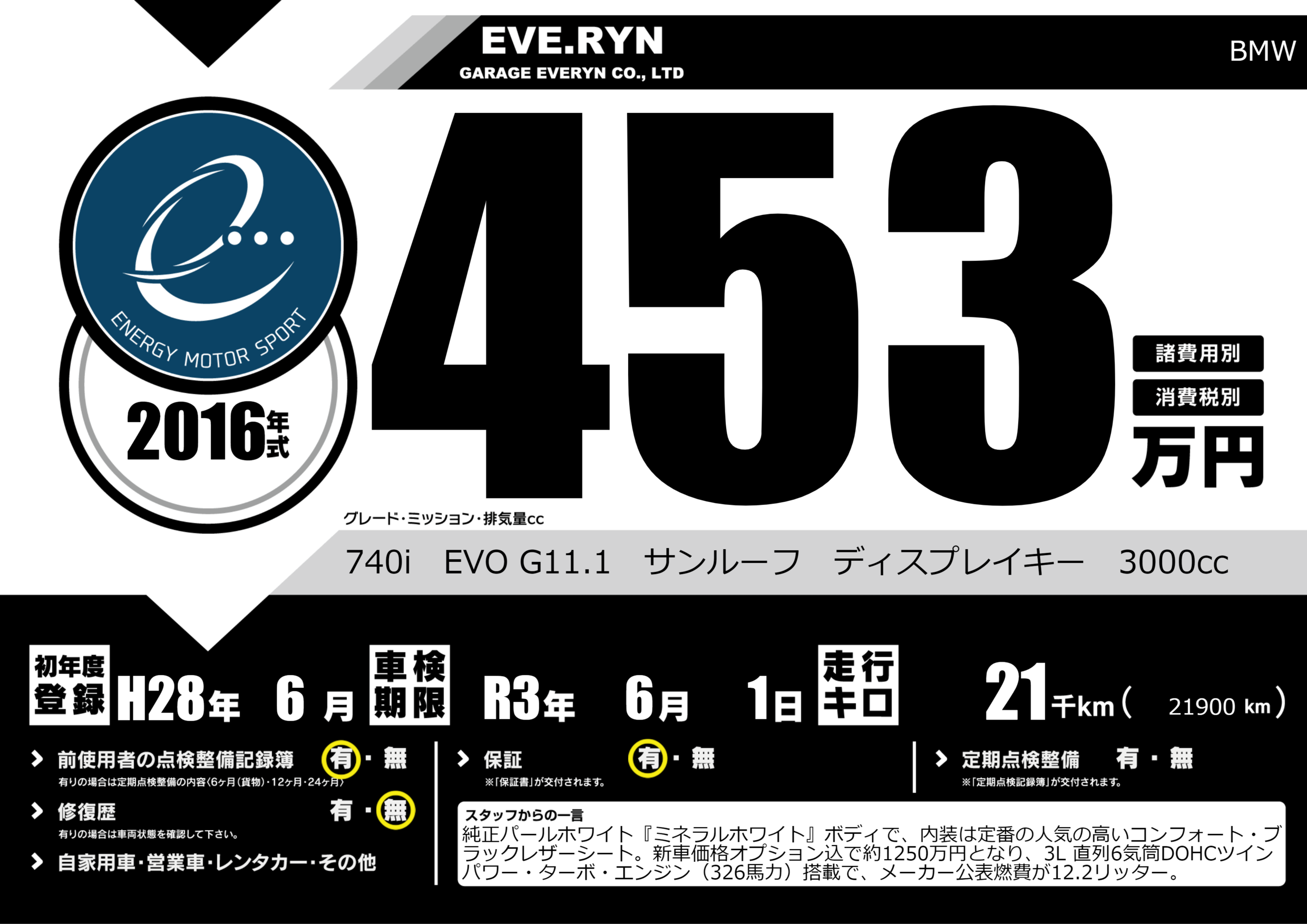 なし | 車検制限 | R3年6月1月 |