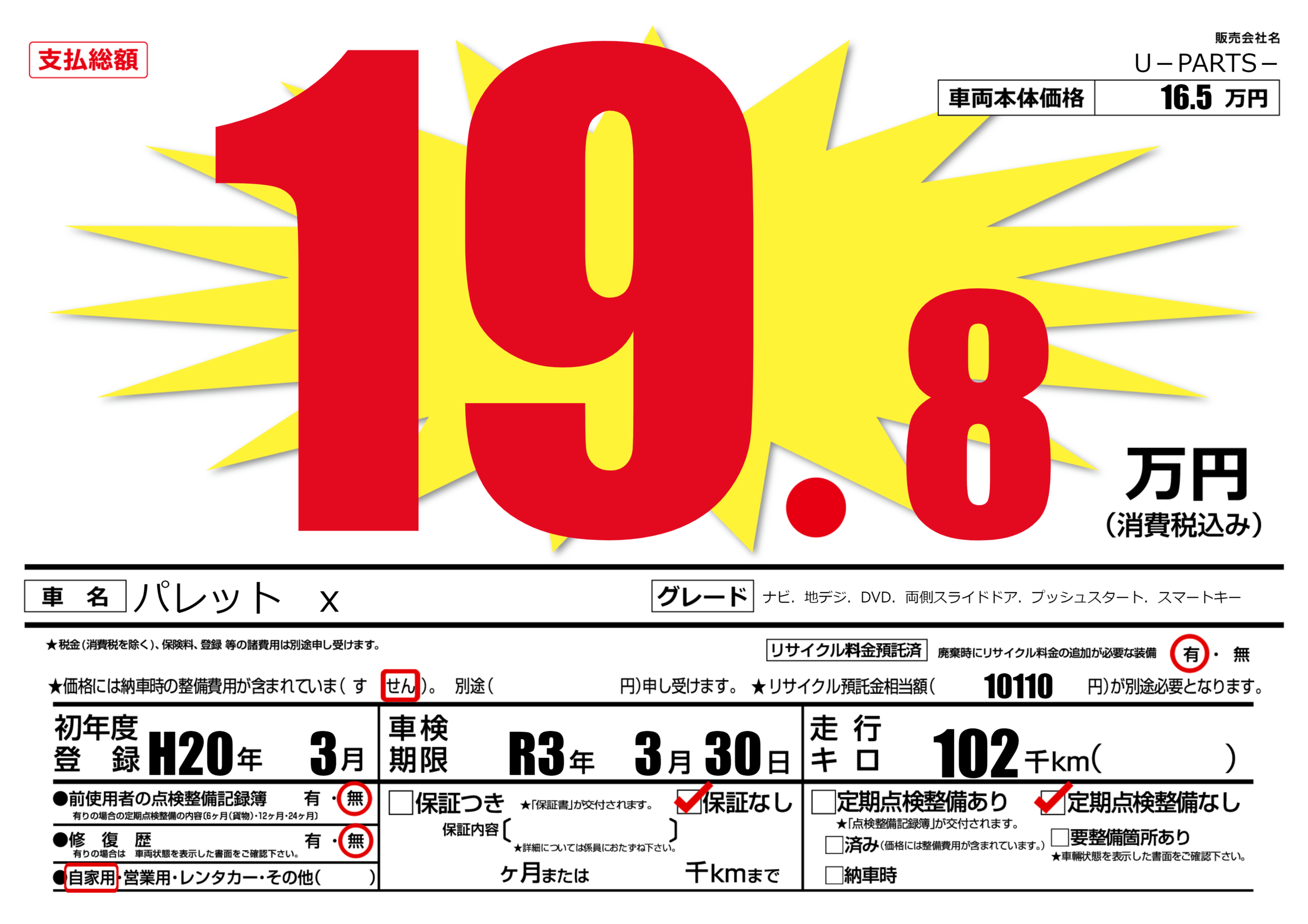 なし | 車検制限 | R3年3月30月 |