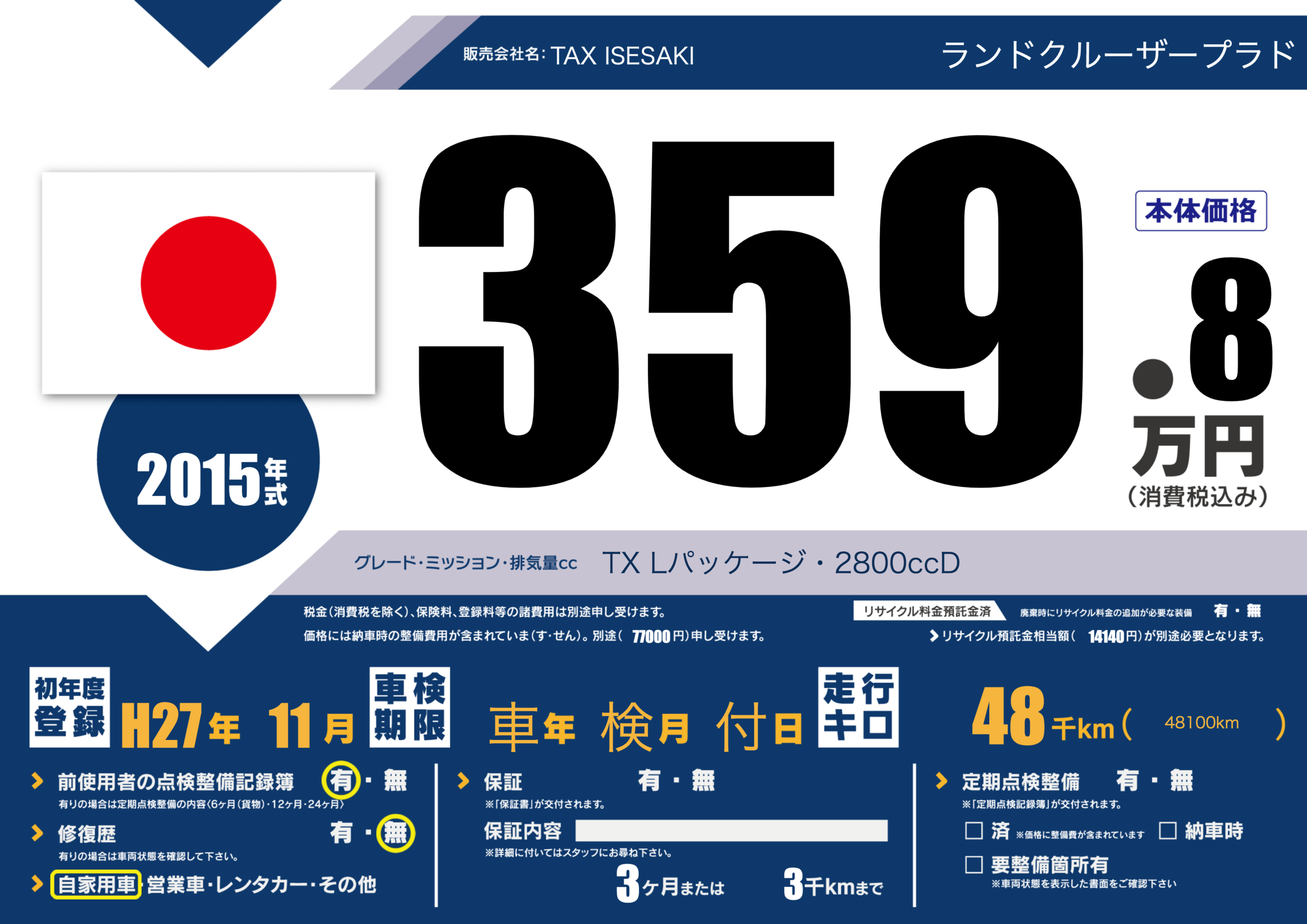 | 車名 | ランドクルーザープラド | グレード ミッション 排気量 |