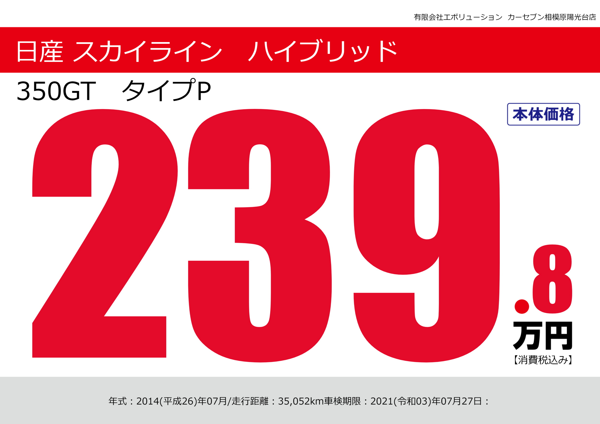| 車名 | 日産 スカイライン ハイブリッド | グレード ミッション 排気量 |