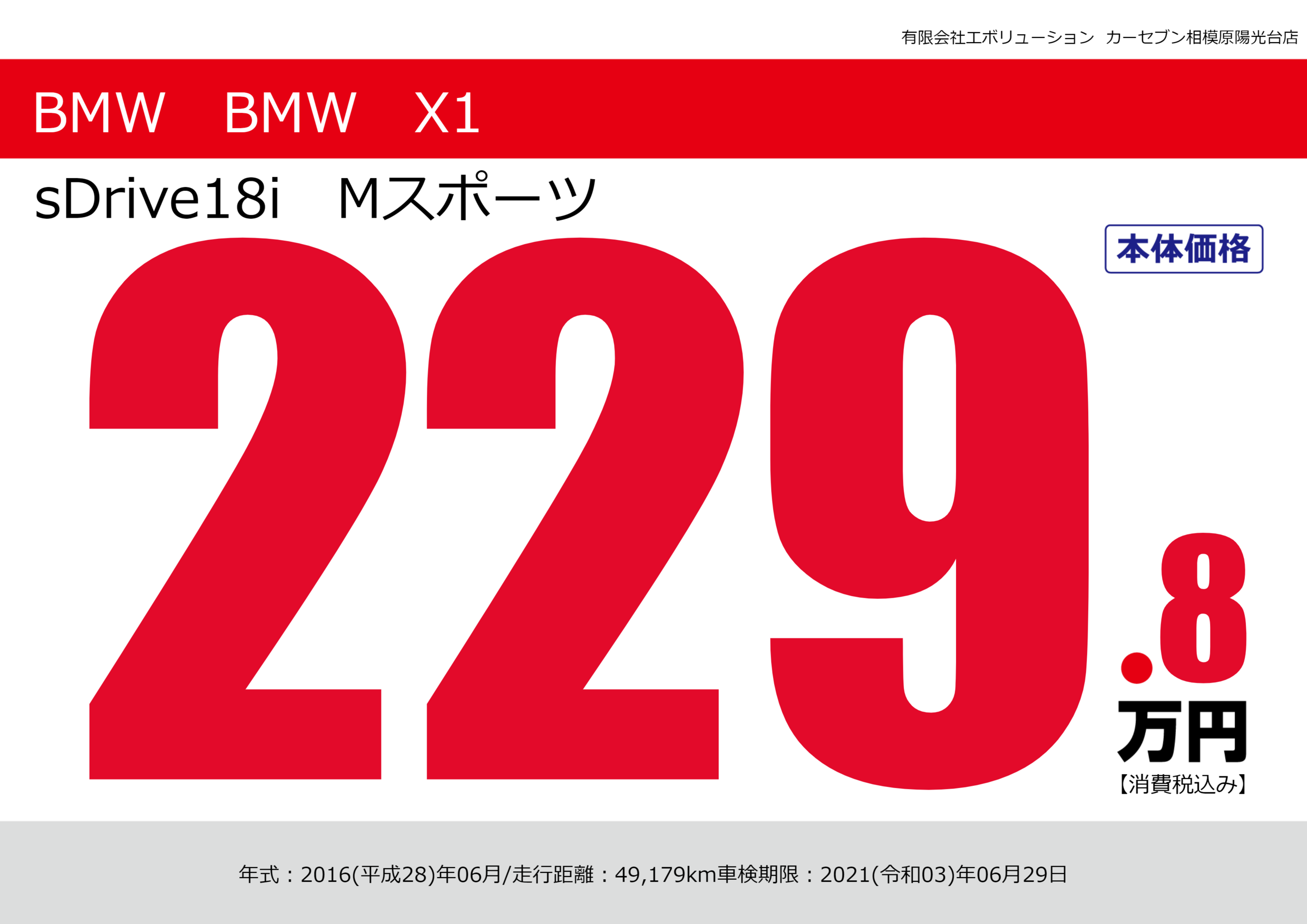| 車名 | BMW BMW X1 | グレード ミッション 排気量 |