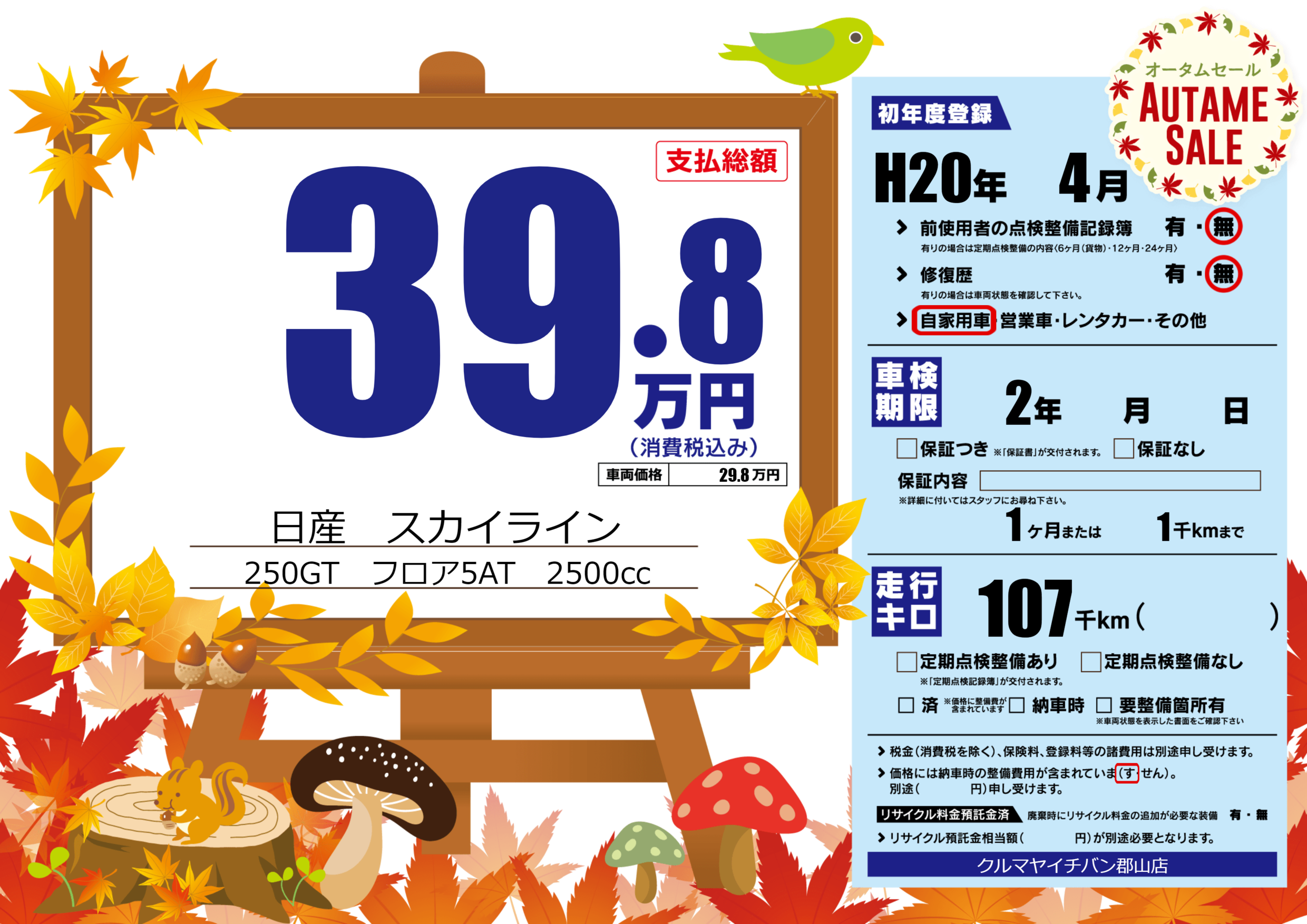 | 車名 | 日産 スカイライン | グレード ミッション 排気量 |