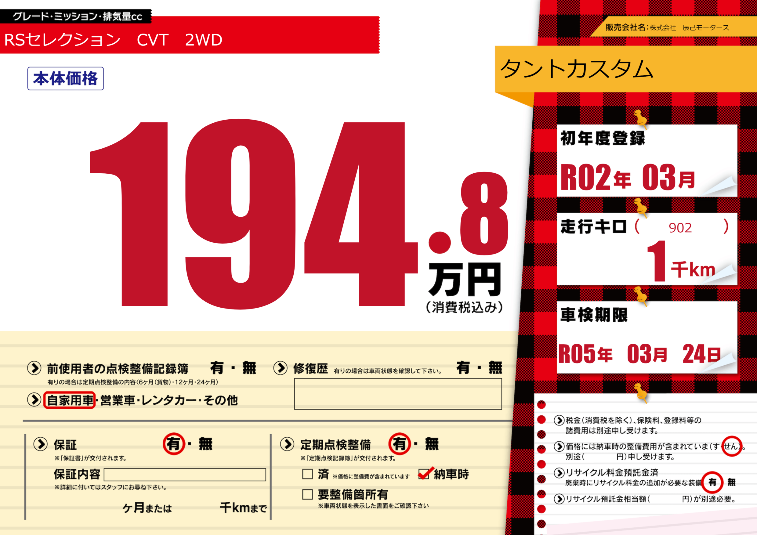 | 車名 | タントカスタム | グレード ミッション 排気量 |