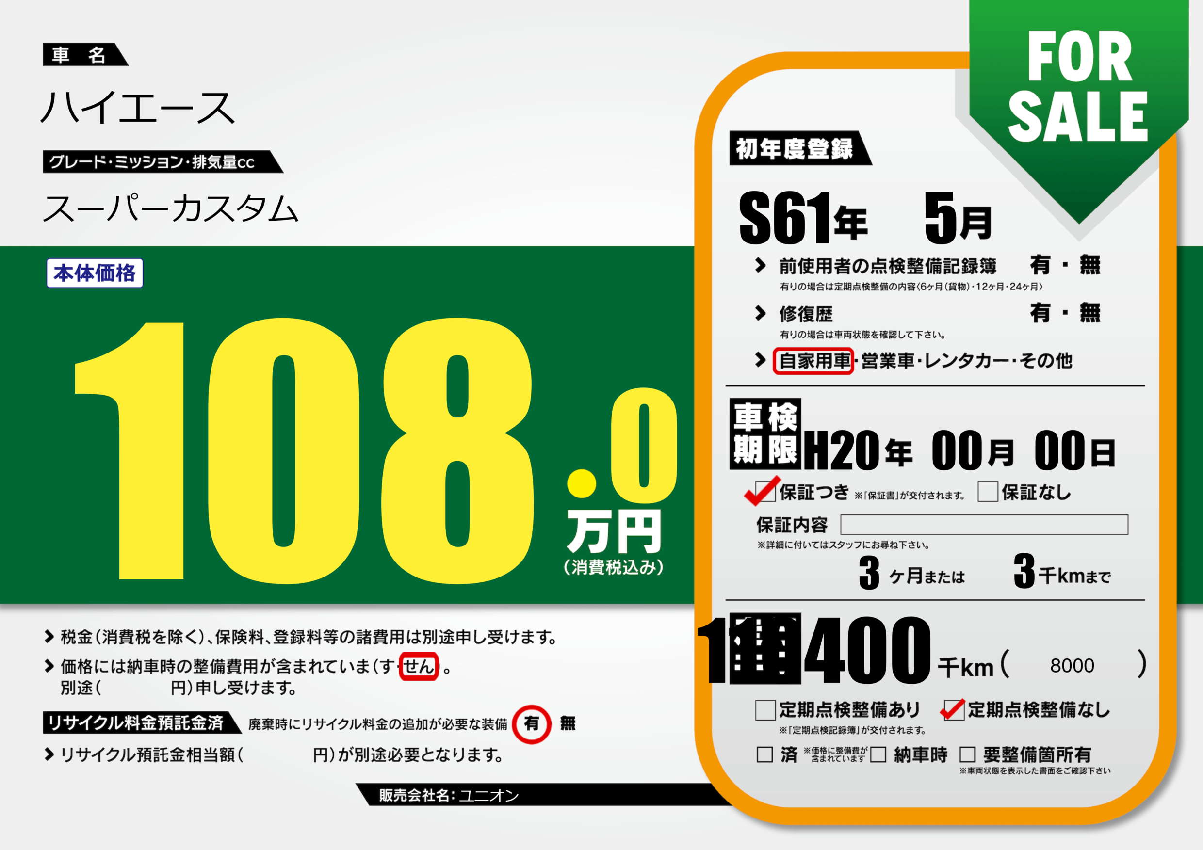 保証付き 保証内容(---) 3ヶ月または(3)千kmまで |