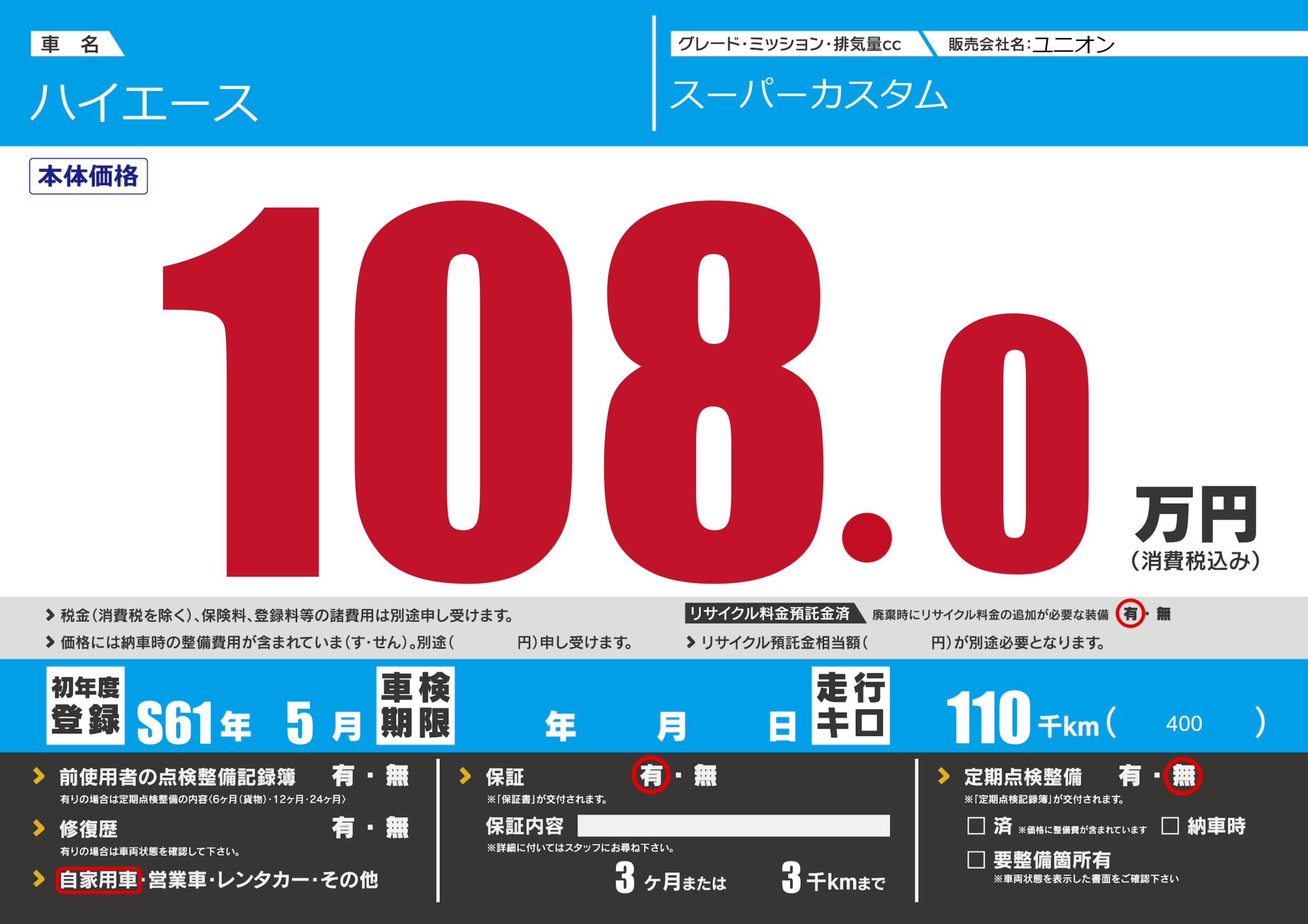 保証付き 保証内容(---) 3ヶ月または(3)千kmまで |