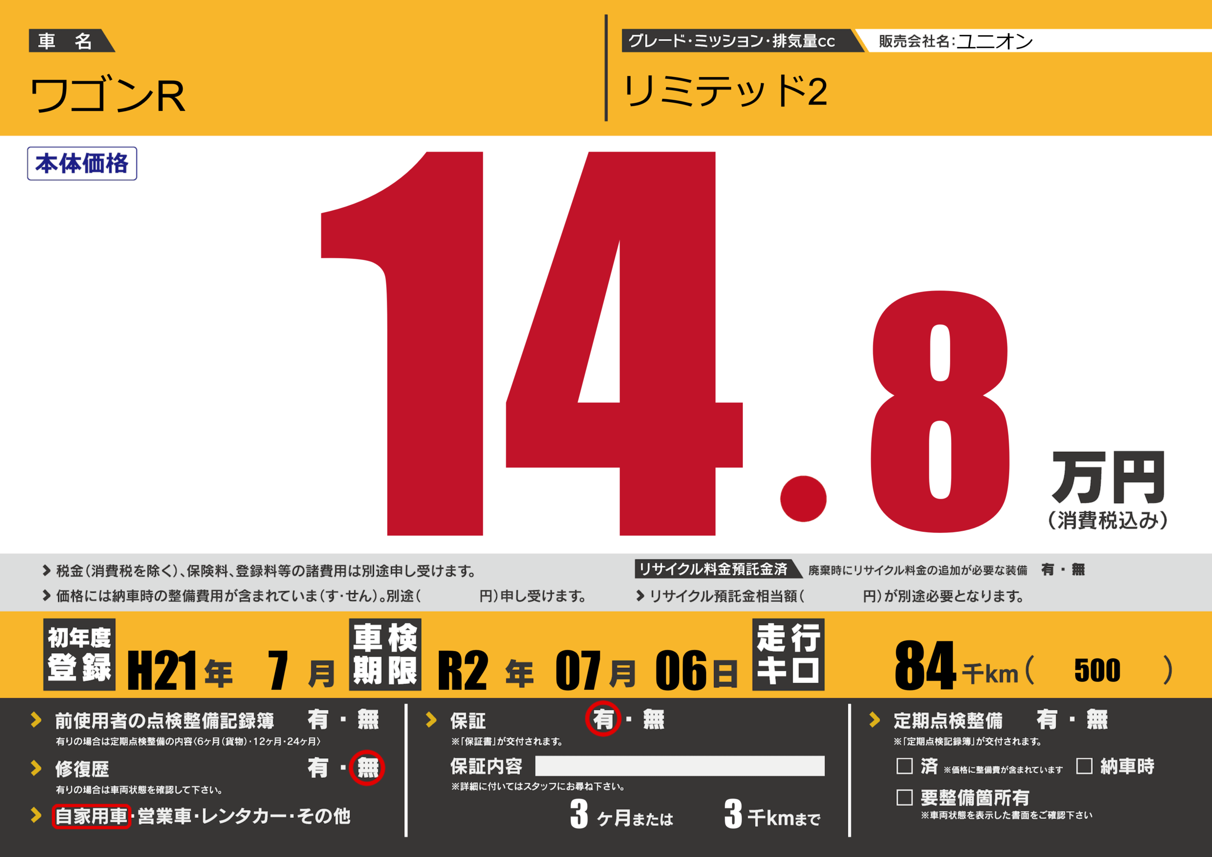 保証付き 保証内容(---) 3ヶ月または(3)千kmまで |
