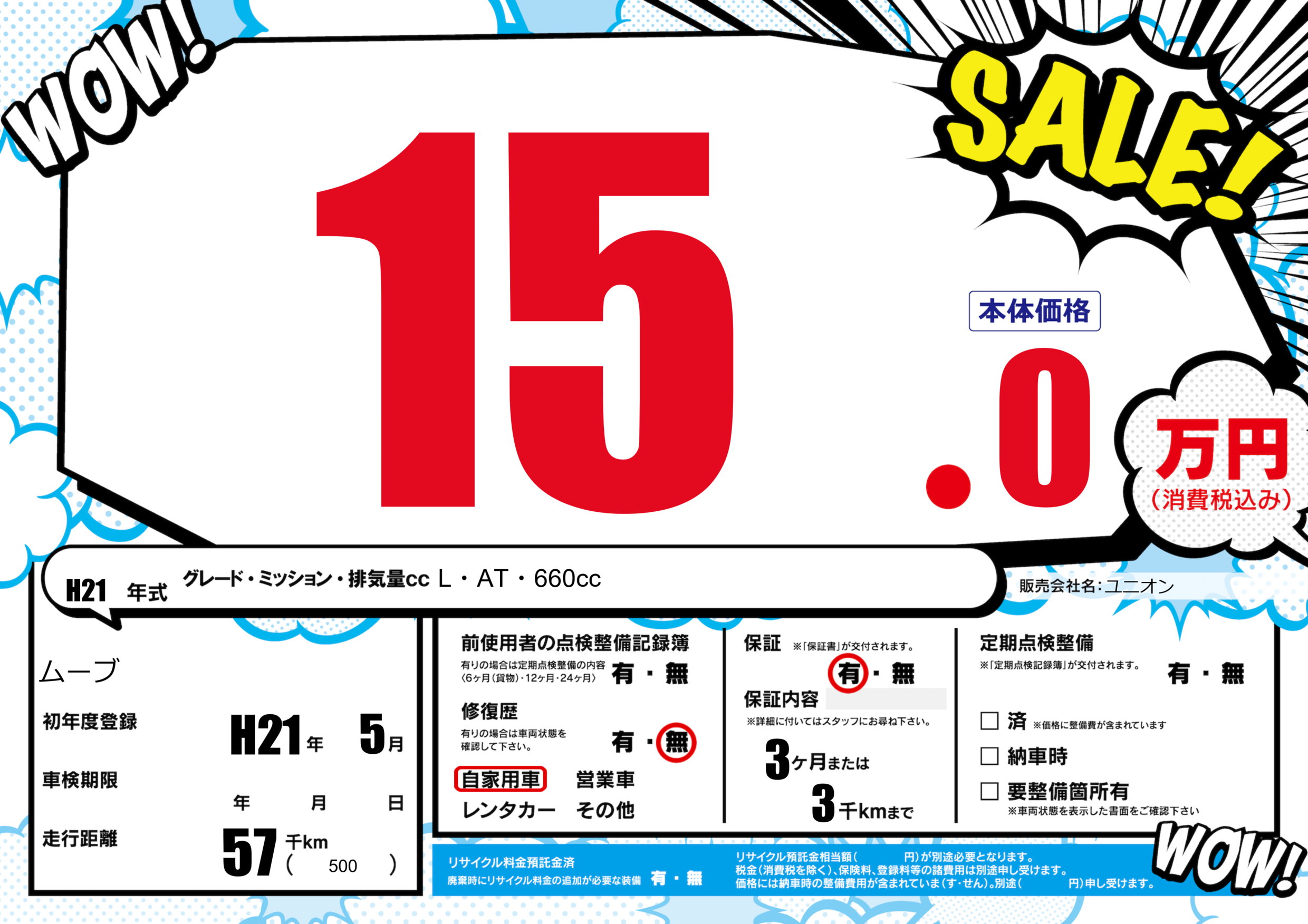 | 車名 | ムーブ | グレード ミッション 排気量 |