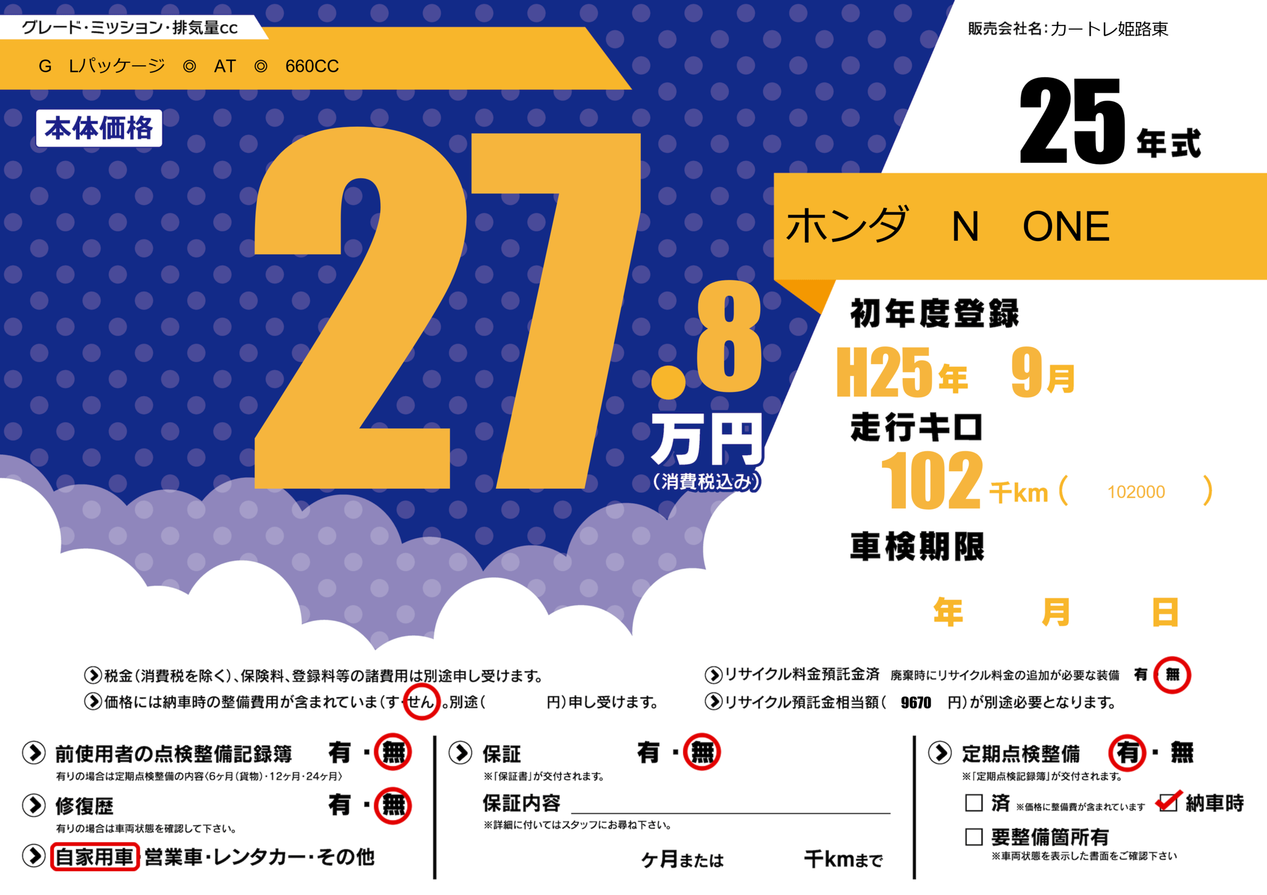 | 定期点検整備 | 定期点検整備あり 納車時あり | ||