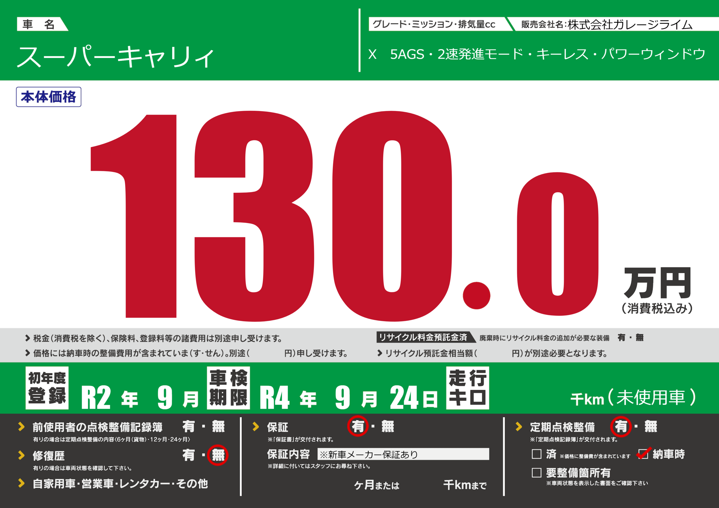 なし | 車検制限 | R4年9月24月 |