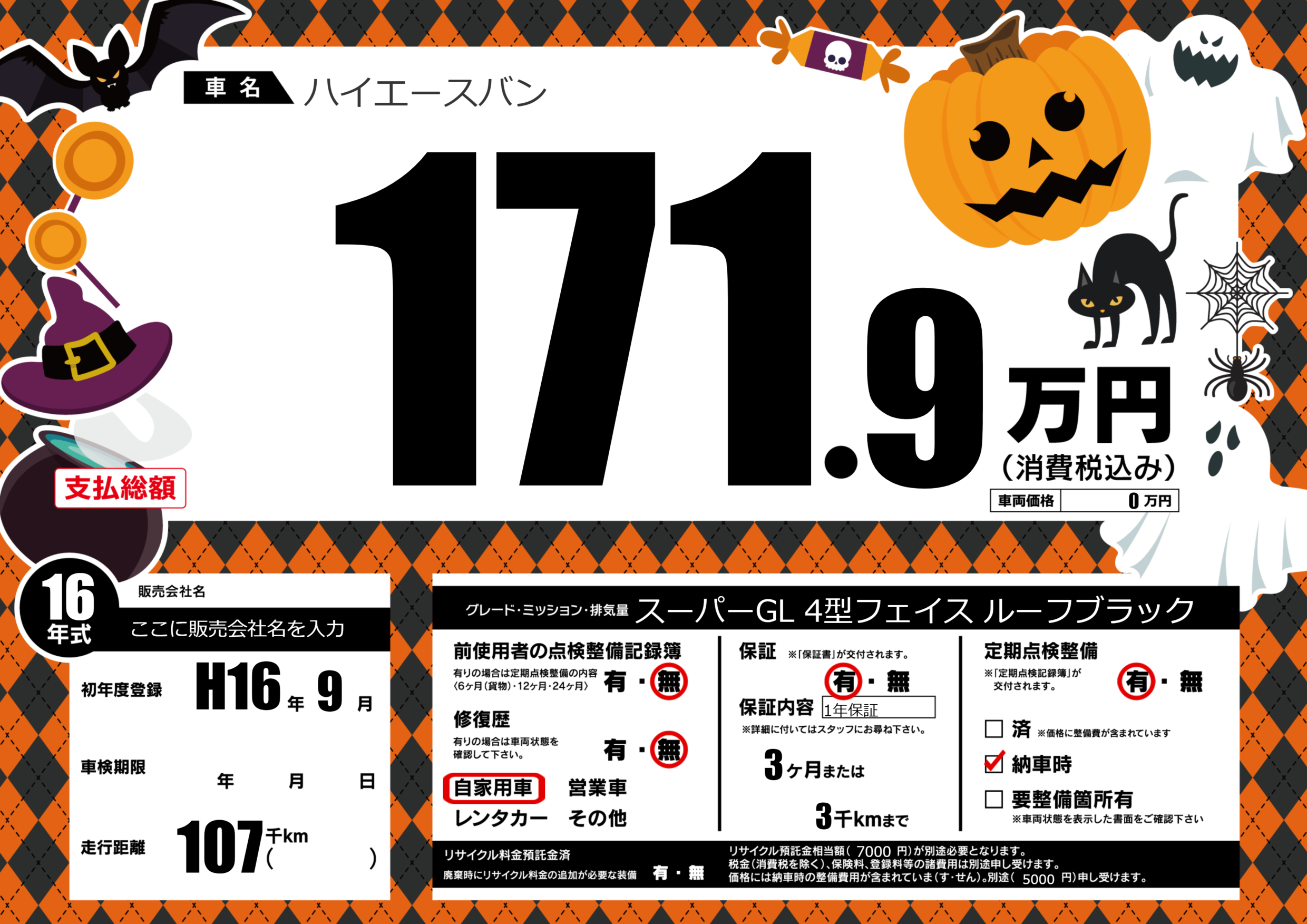 | 定期点検整備 | 定期点検整備あり 納車時あり | ||