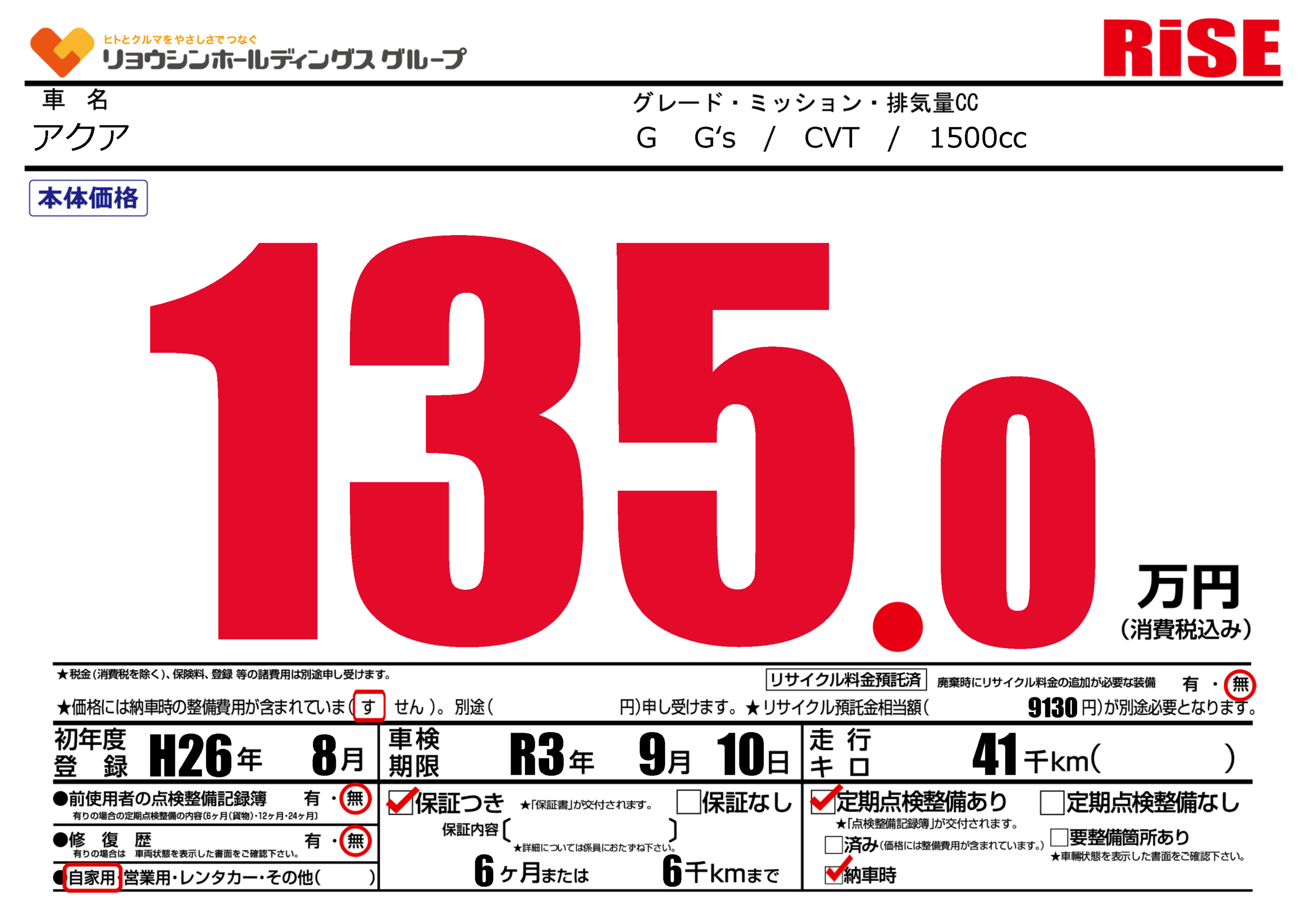 保証付き 保証内容(---) 6ヶ月または(6)千kmまで |