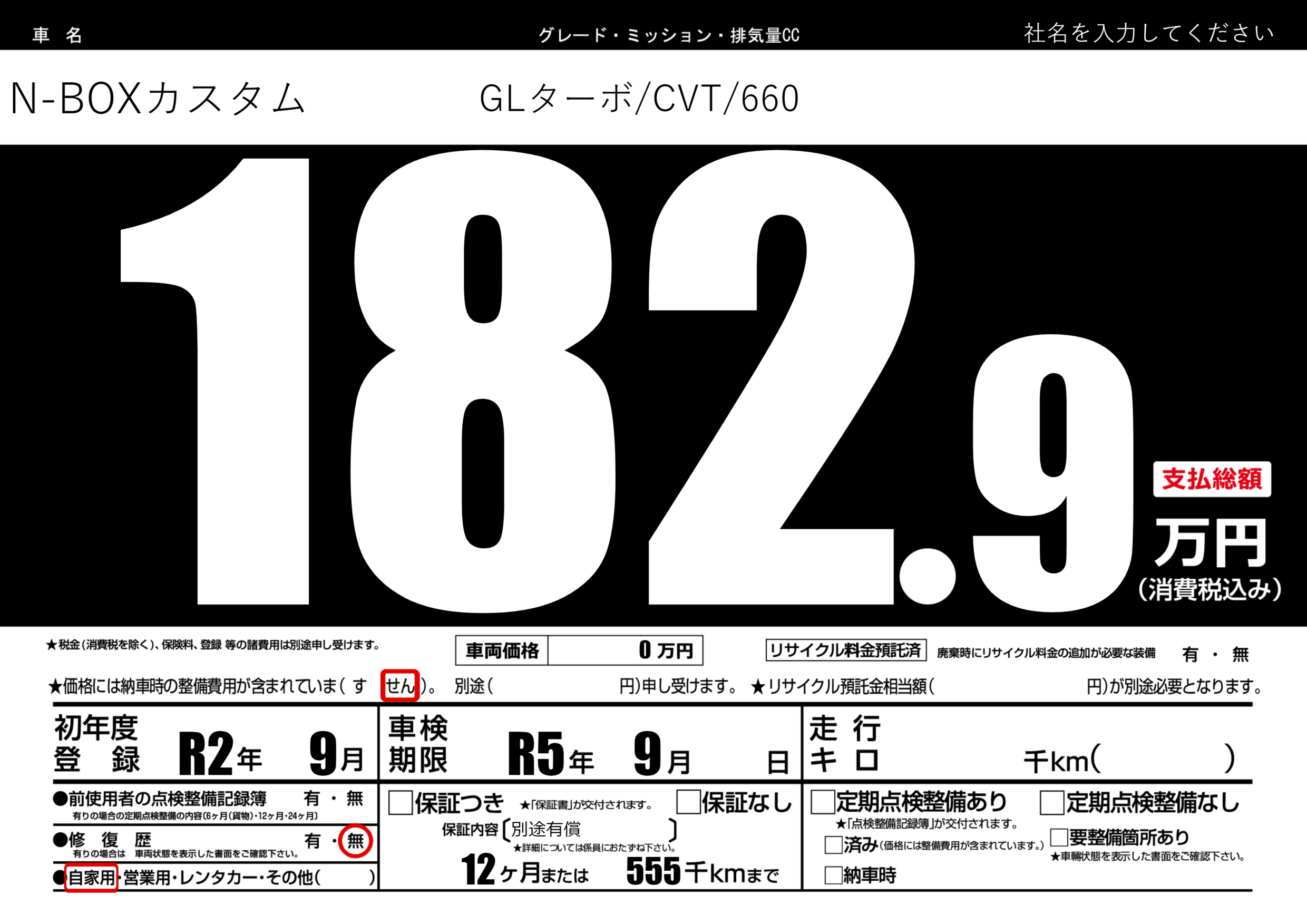 | 車名 | N-BOXカスタム | グレード ミッション 排気量 |