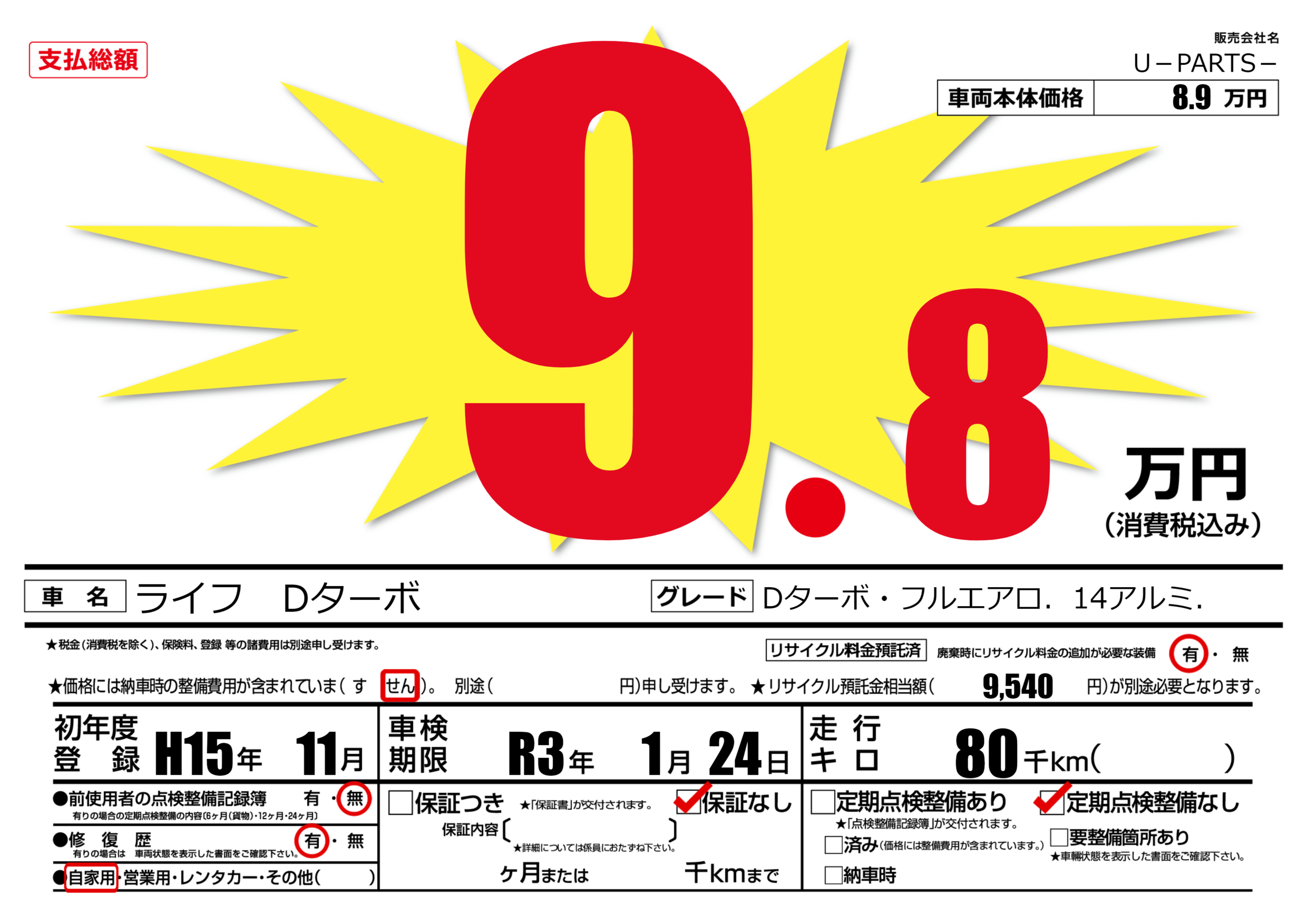 Dターボ・フルエアロ.14アルミ. |
