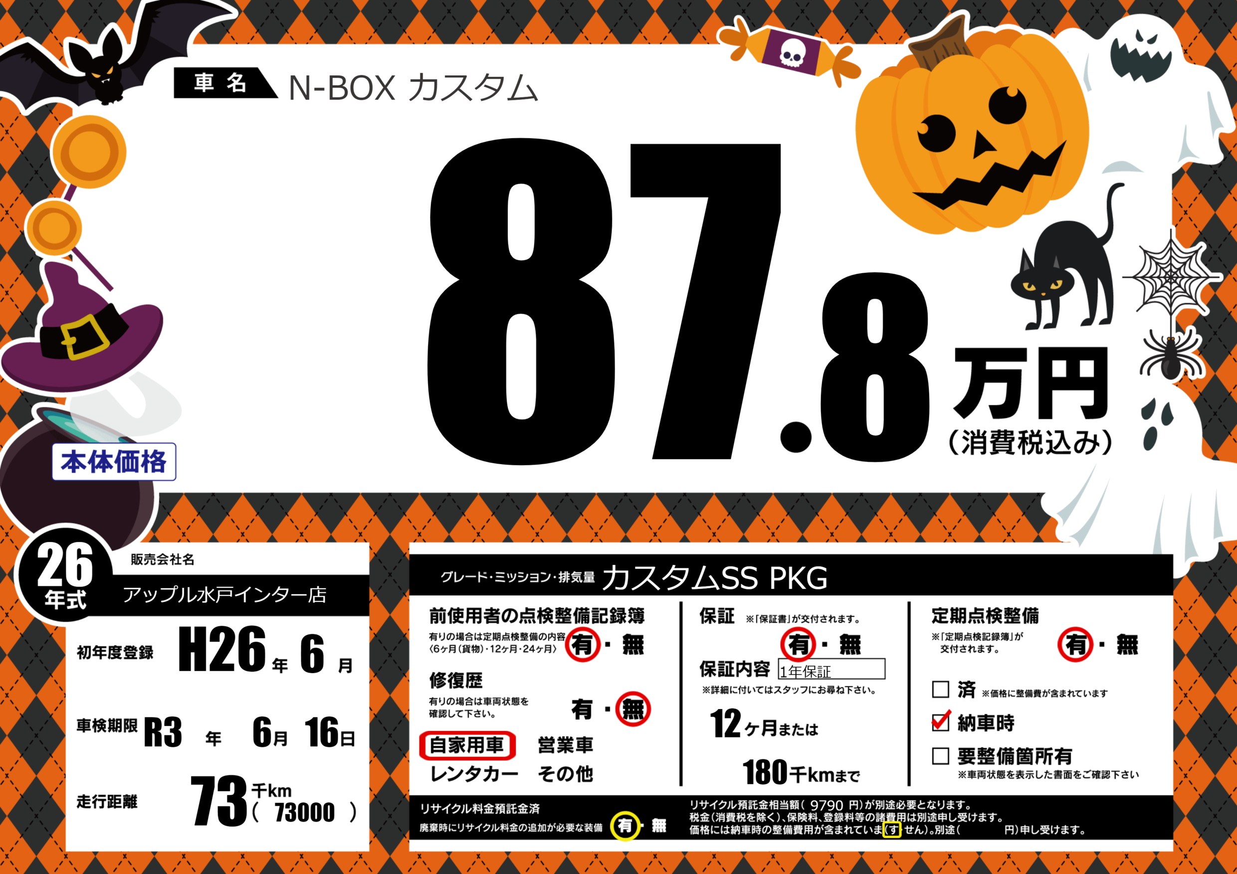 | 車名 | N-BOX カスタム | グレード ミッション 排気量 |