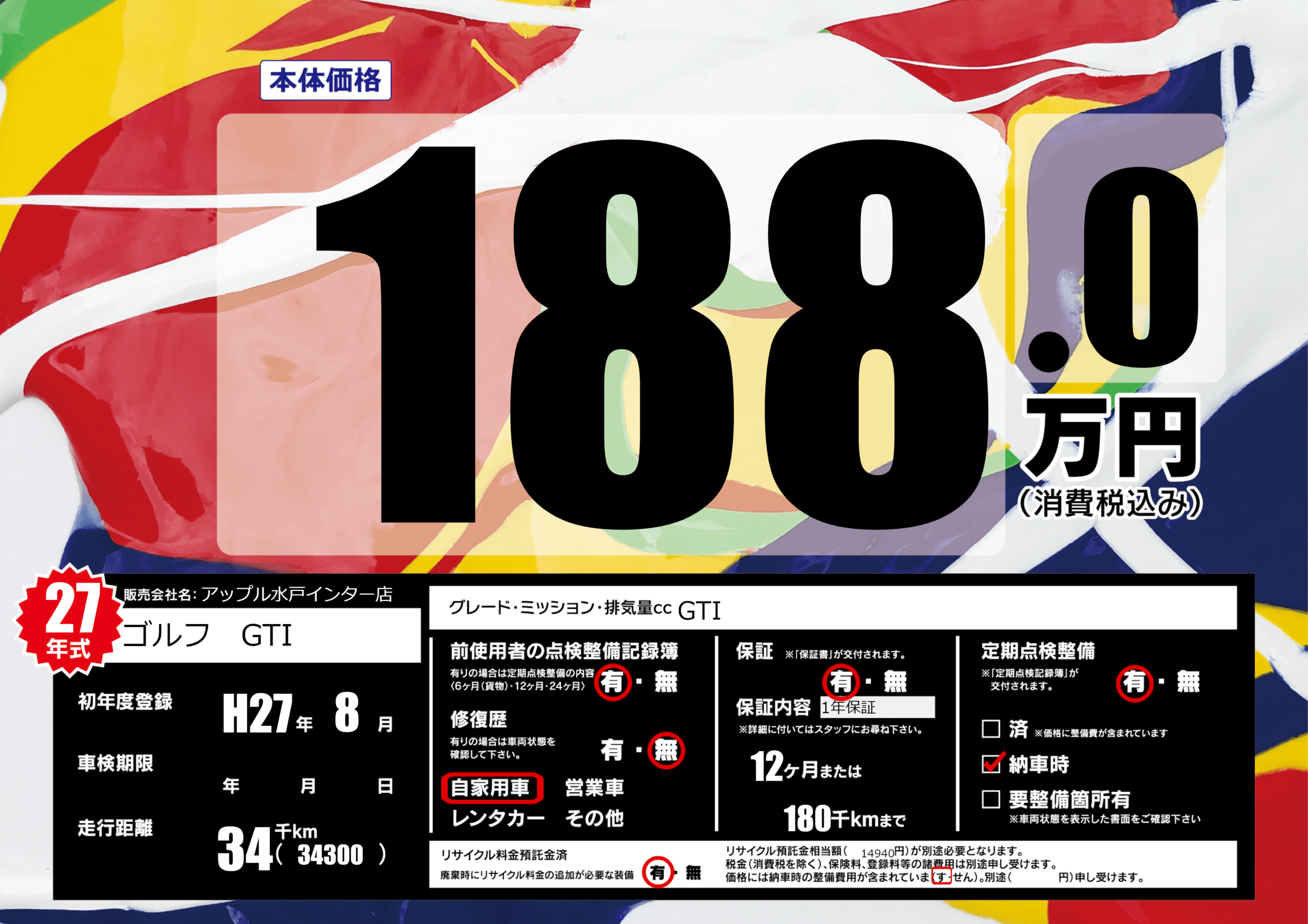 | 車名 | ゴルフ GTI | グレード ミッション 排気量 |