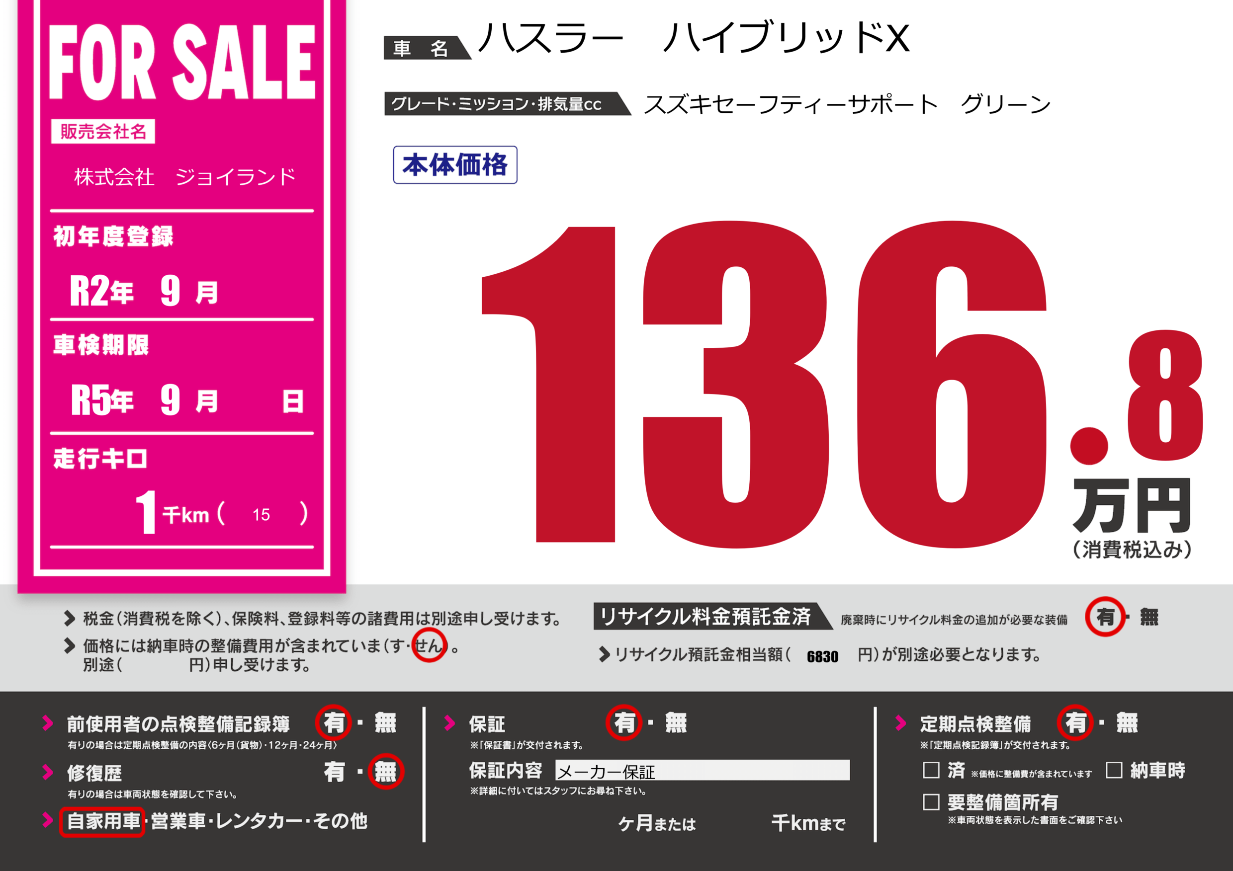なし | 車検制限 | R5年9月---月 |