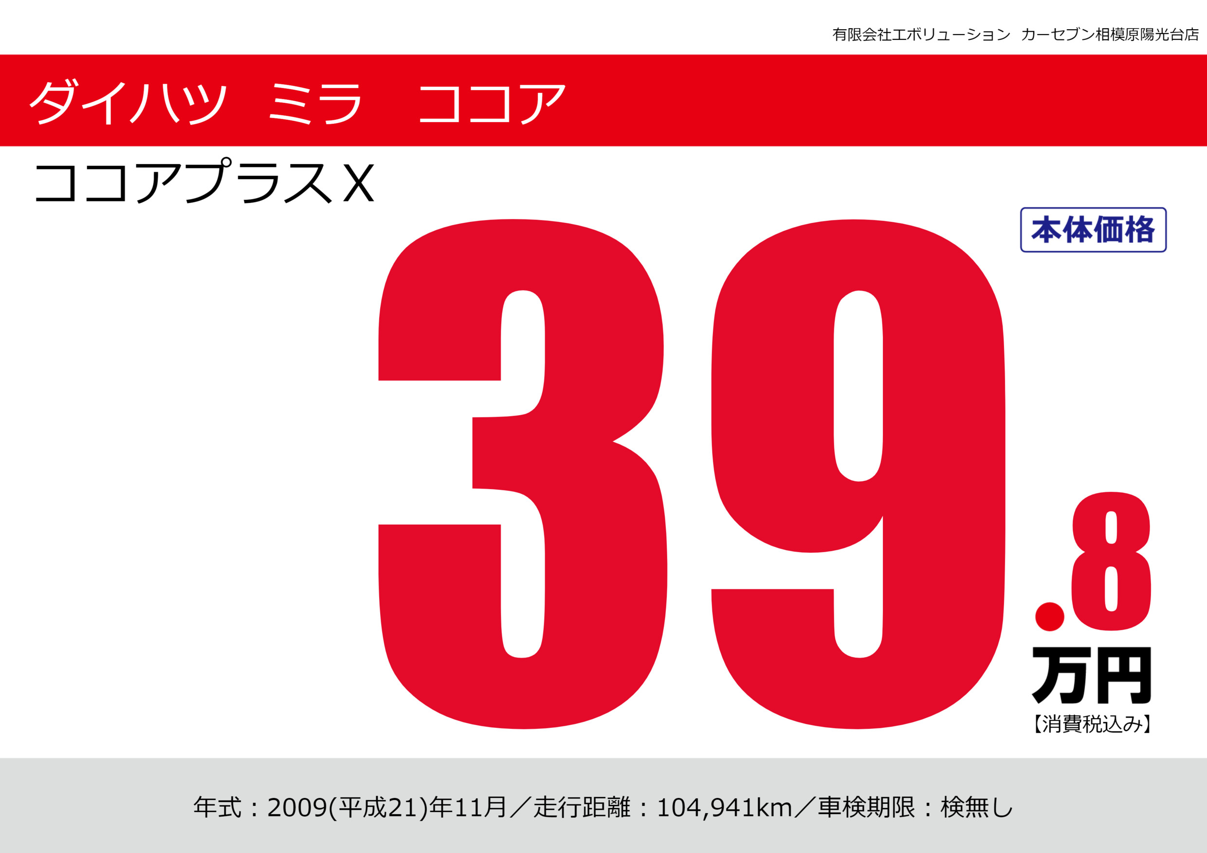 | 車名 | ダイハツ ミラ ココア | グレード ミッション 排気量 |