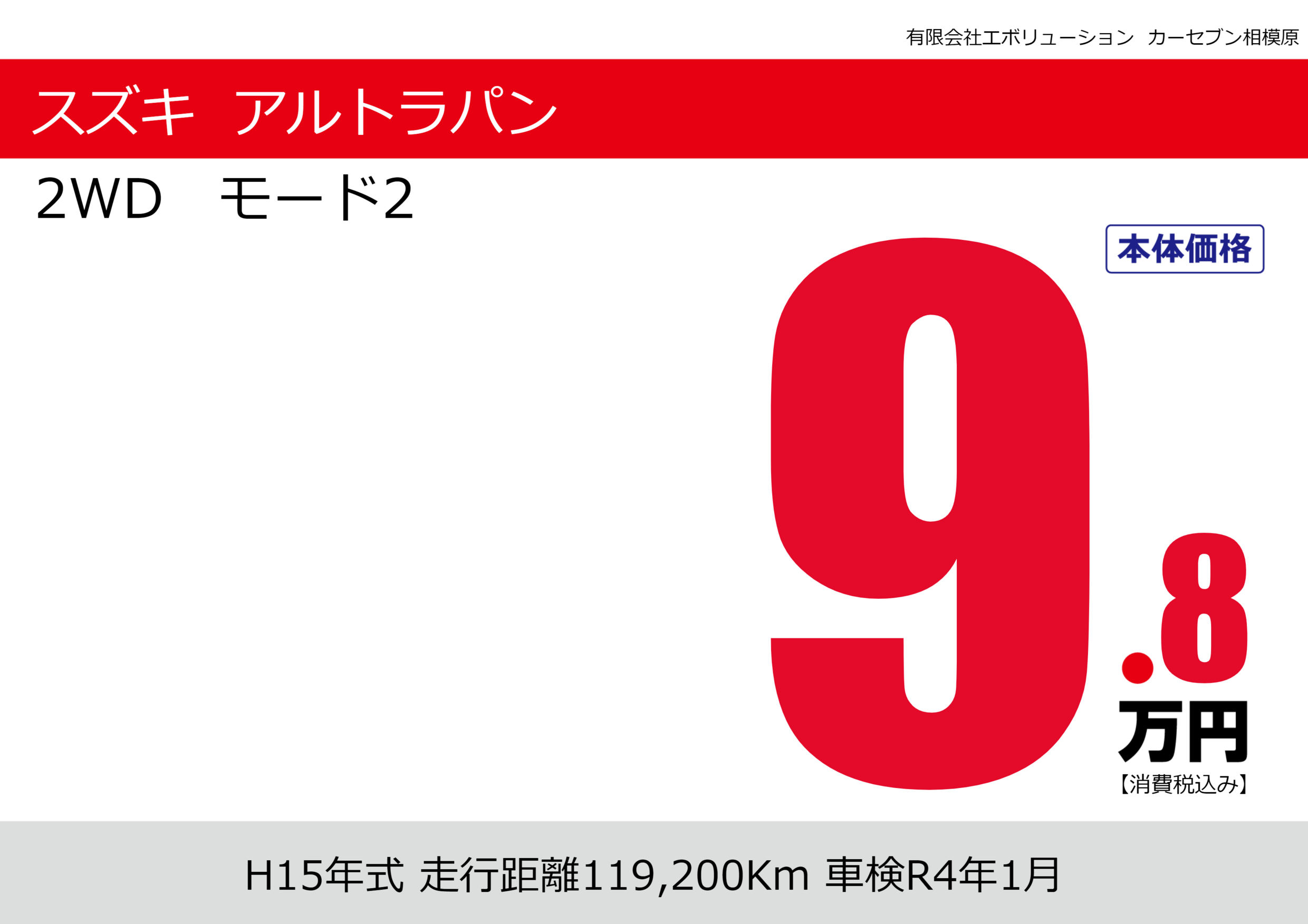 | 車名 | スズキ アルトラパン | グレード ミッション 排気量 |
