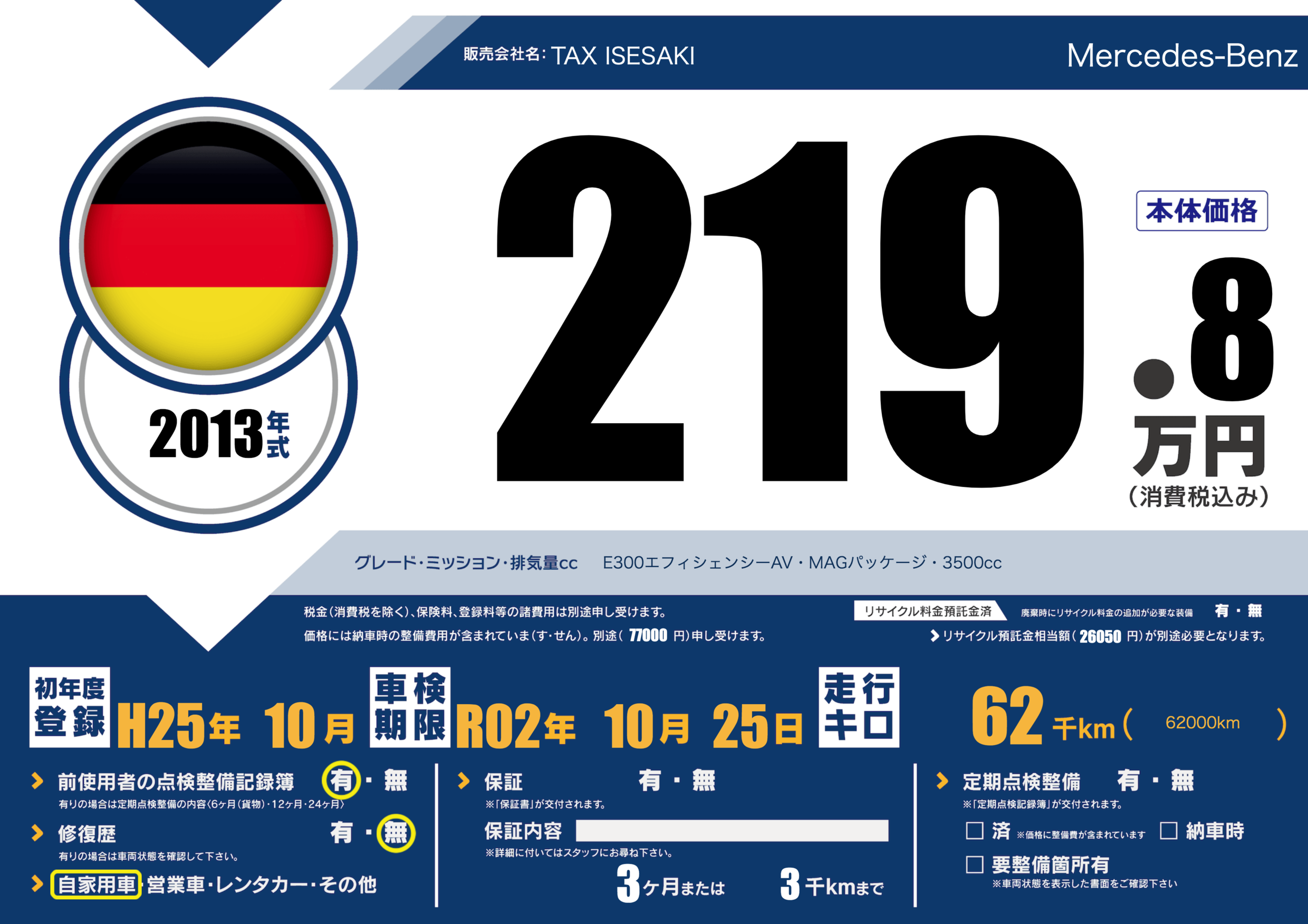 E300エフィシェンシーAV・MAGパッケージ・3500cc |
