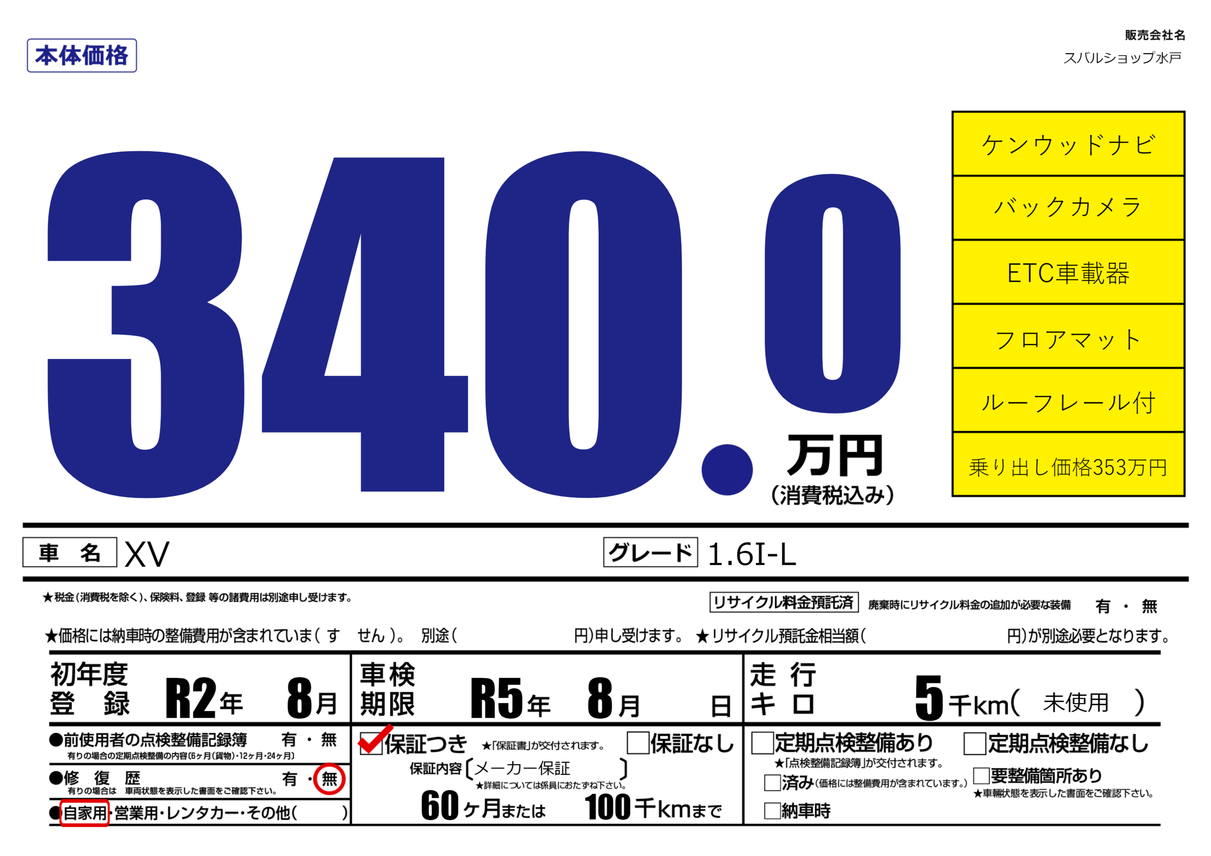 なし | 車検制限 | R5年8月---月 |