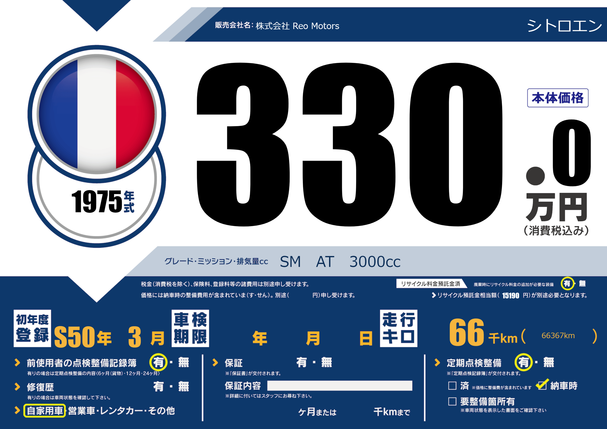 | 走行キロ | 6.6万km | 初年度登録 | S50年3月 |