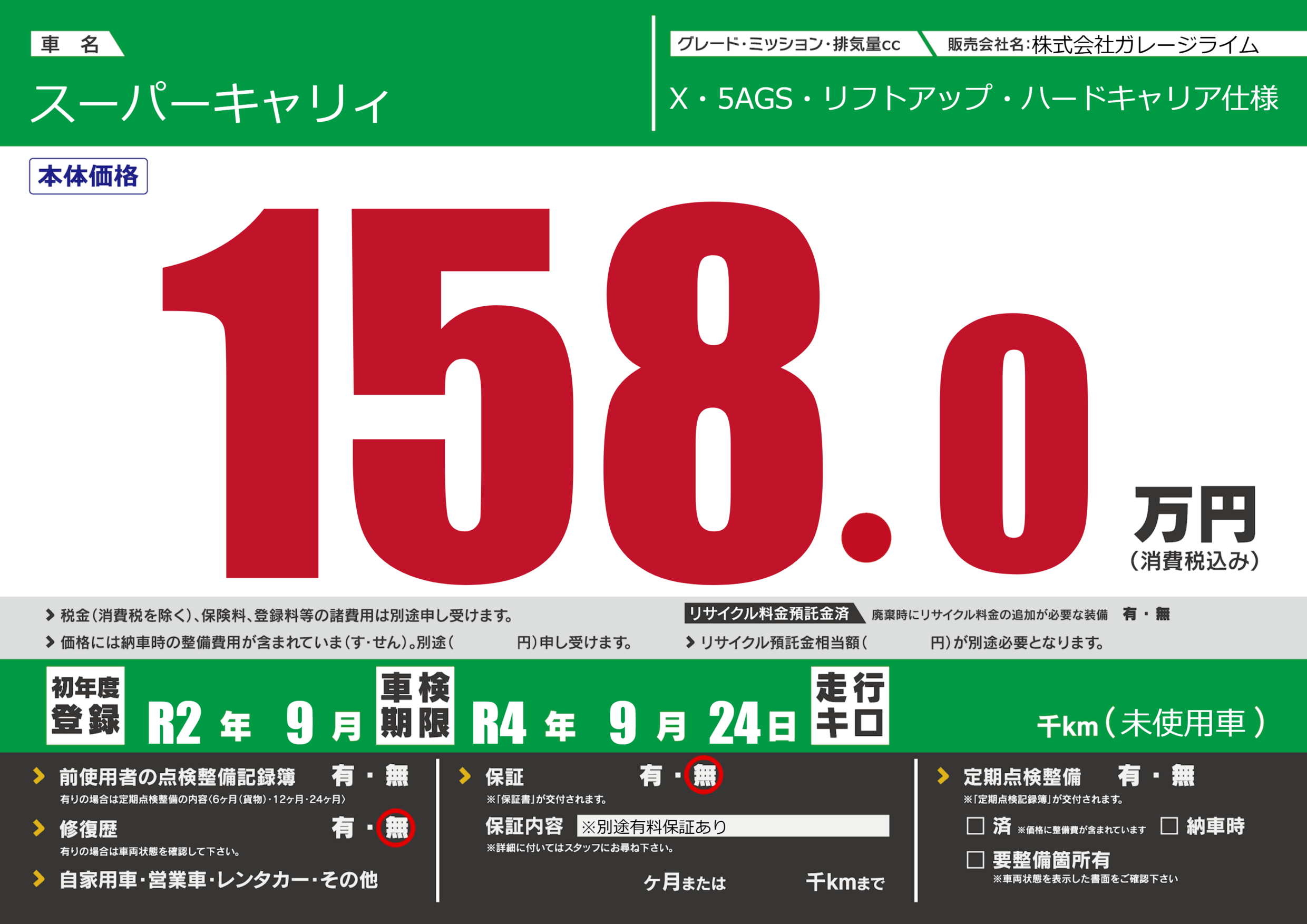 | 車名 | スーパーキャリィ | グレード ミッション 排気量 |