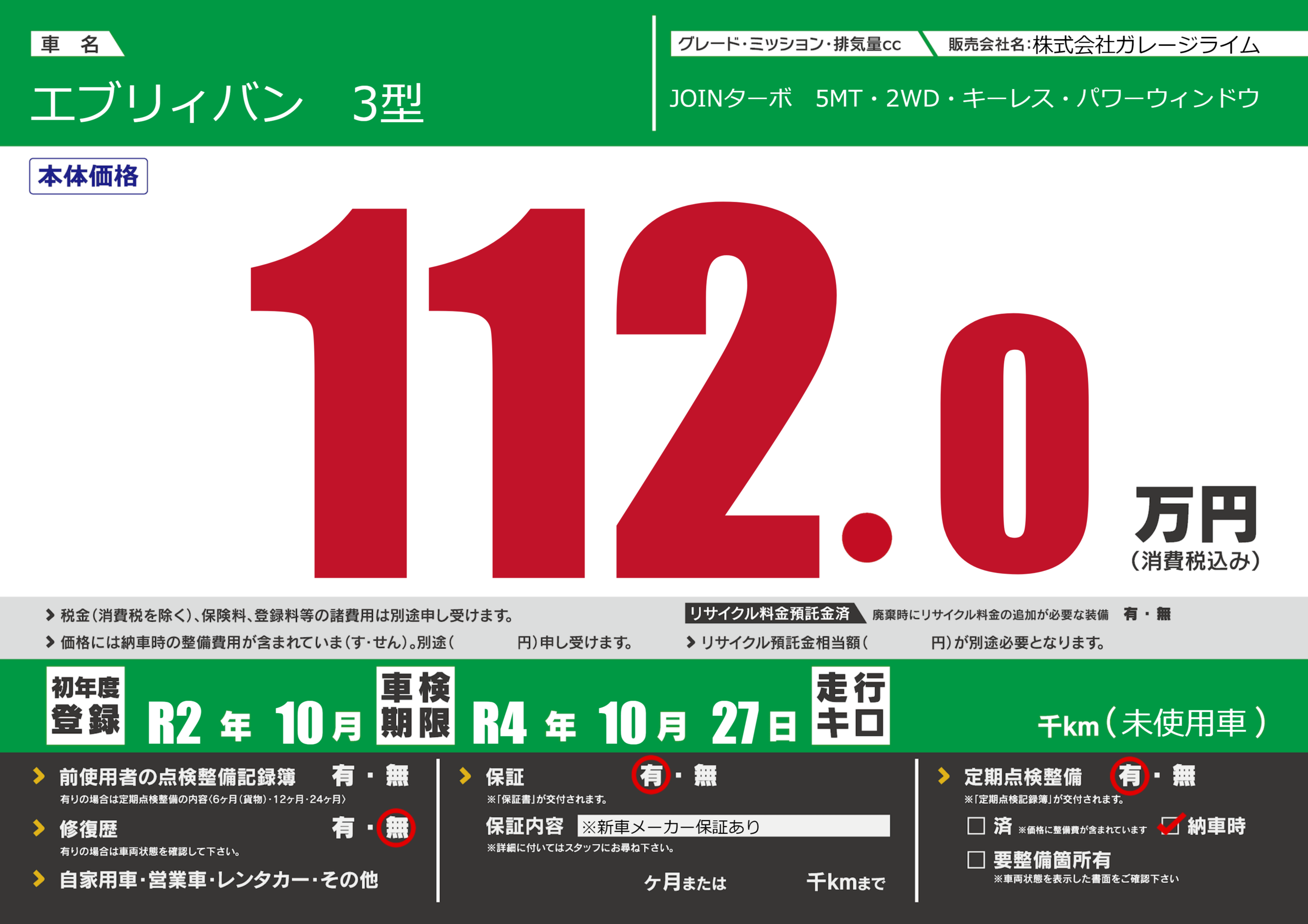 なし | 車検制限 | R4年10月27月 |