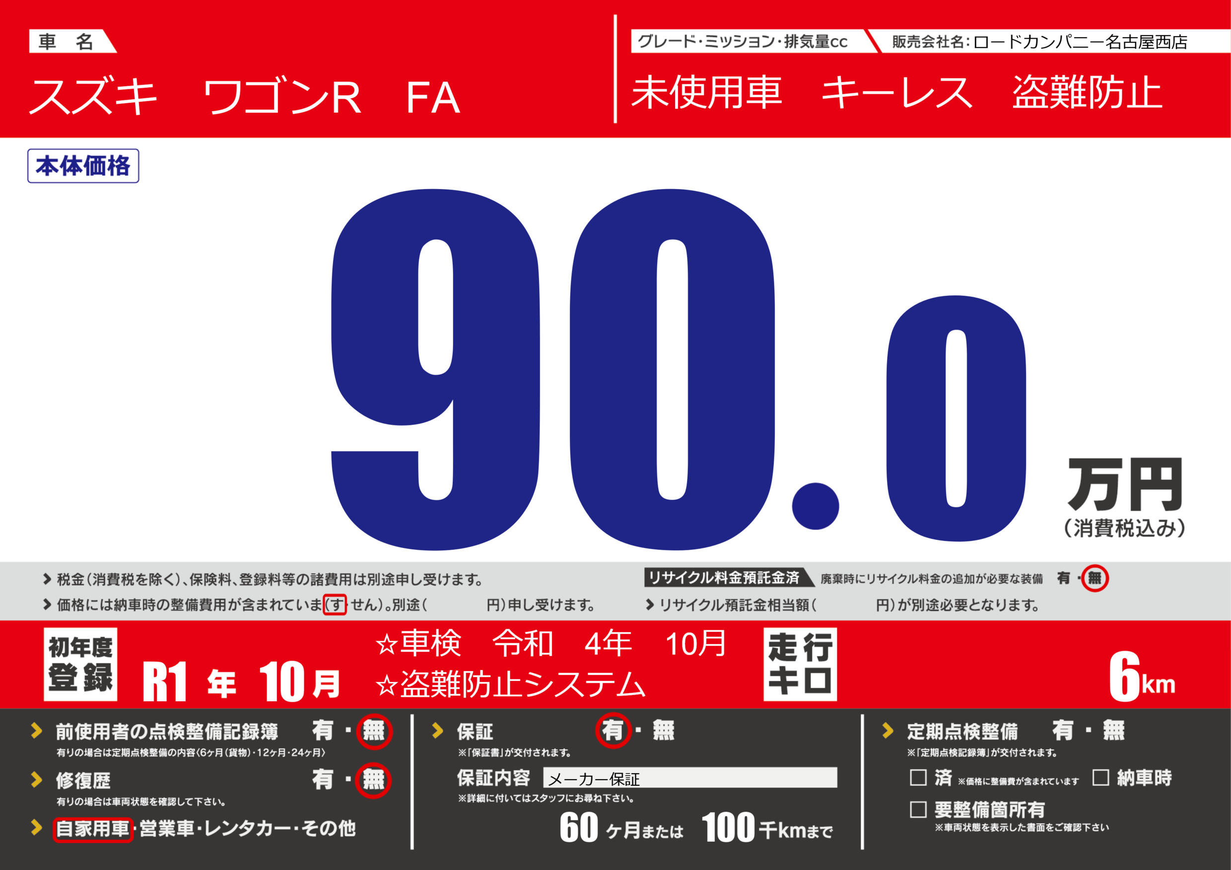 保証付き 保証内容(メーカー保証) 60ヶ月または(100)千kmまで |