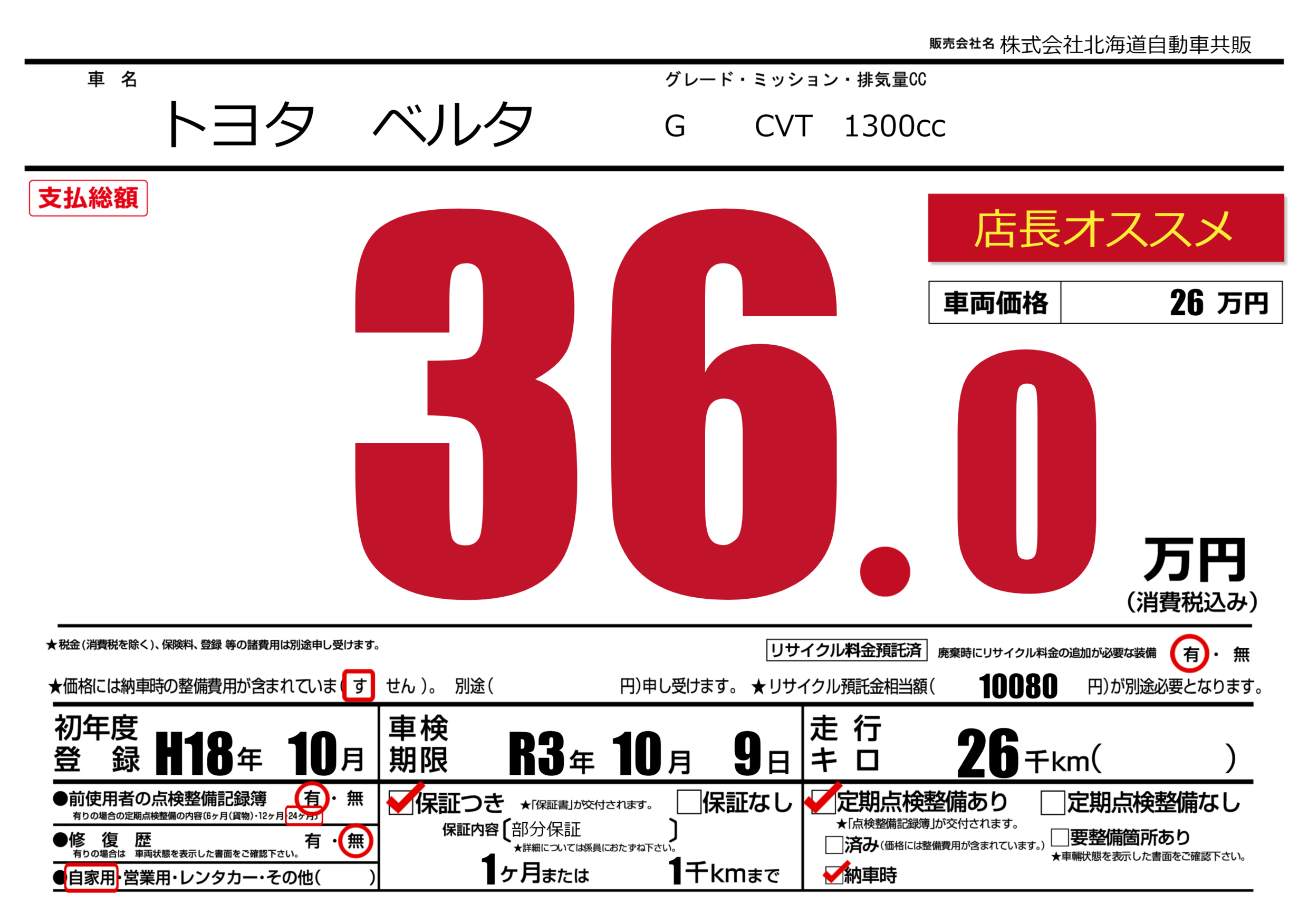| 車名 | トヨタ ベルタ | グレード ミッション 排気量 |