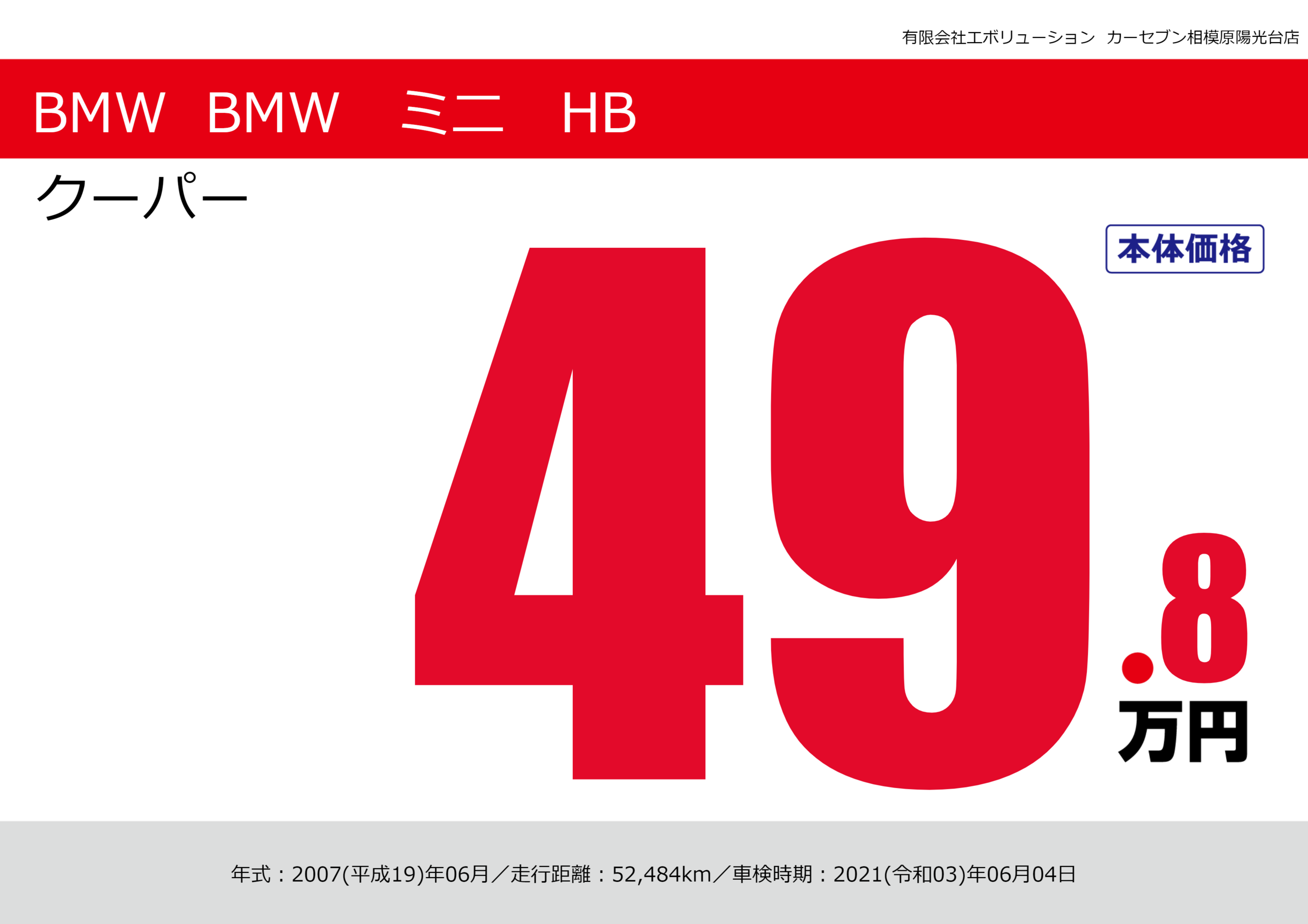 | 車名 | BMW BMW ミニ HB | グレード ミッション 排気量 |