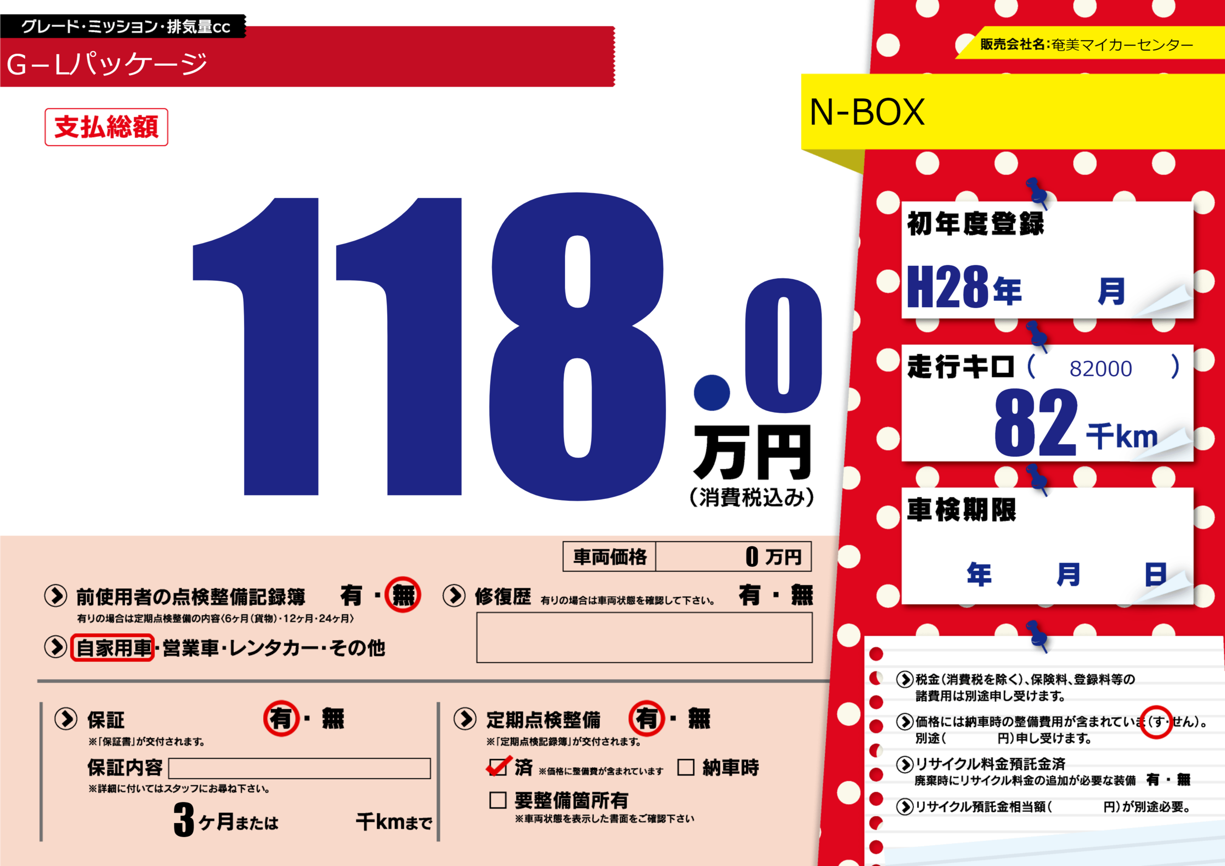 | 定期点検整備 | 定期点検整備あり 定期点検整備済み | ||