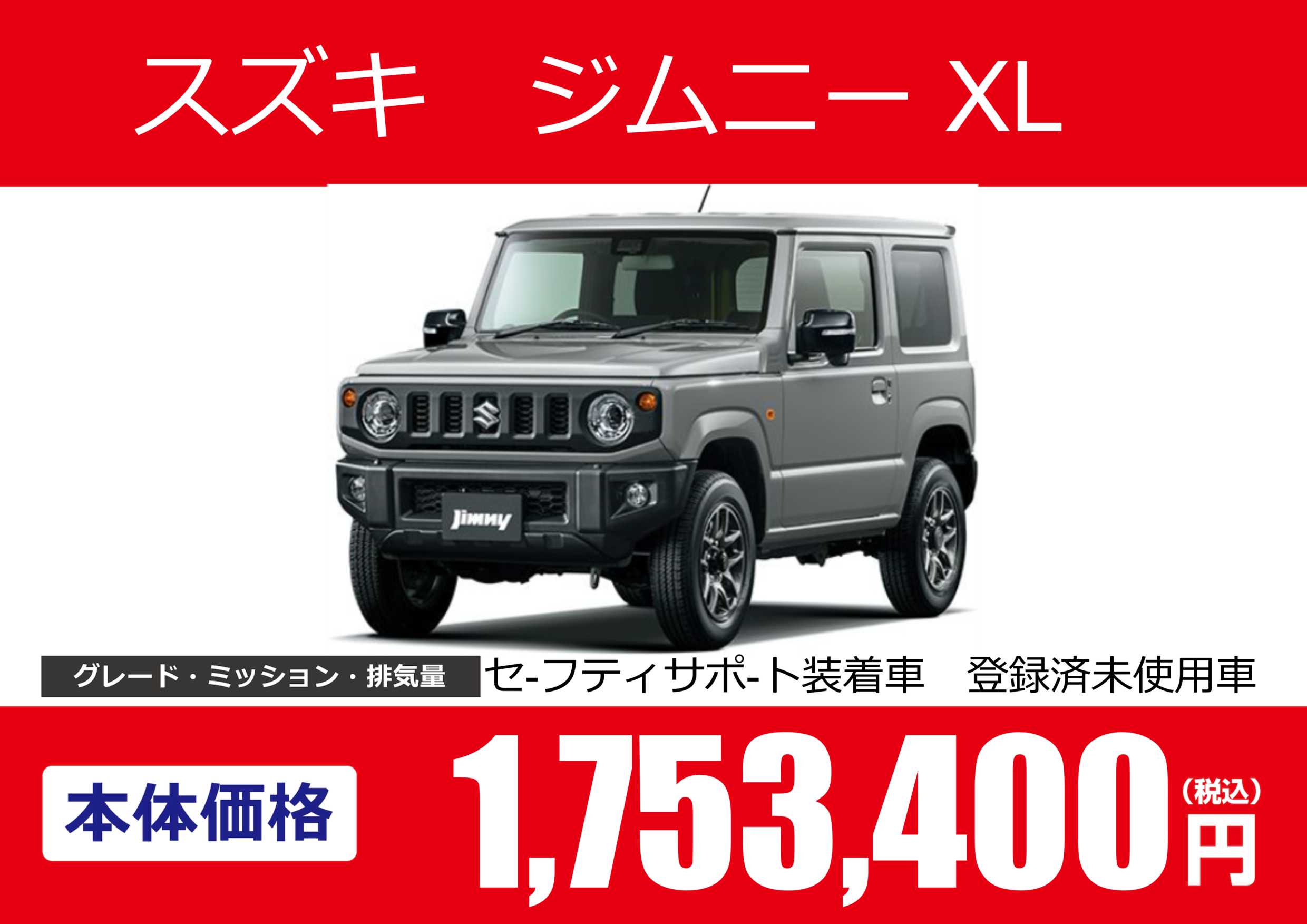 | 車名 | スズキ ジムニー XL | グレード ミッション 排気量 |