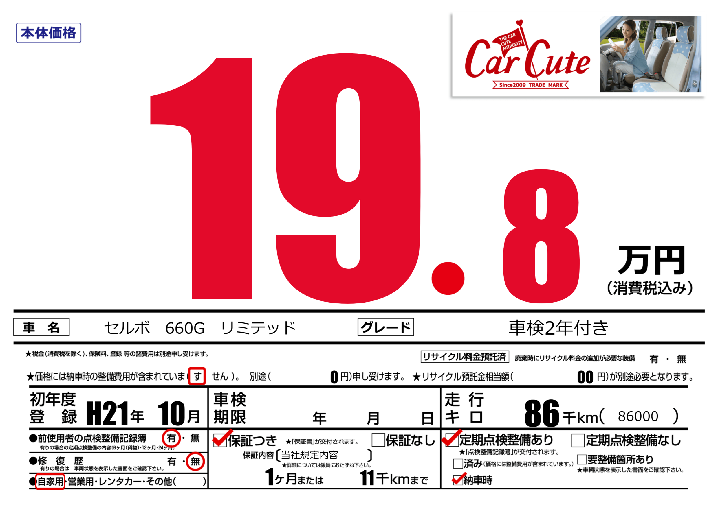 | 車名 | セルボ 660G リミテッド | グレード ミッション 排気量 |