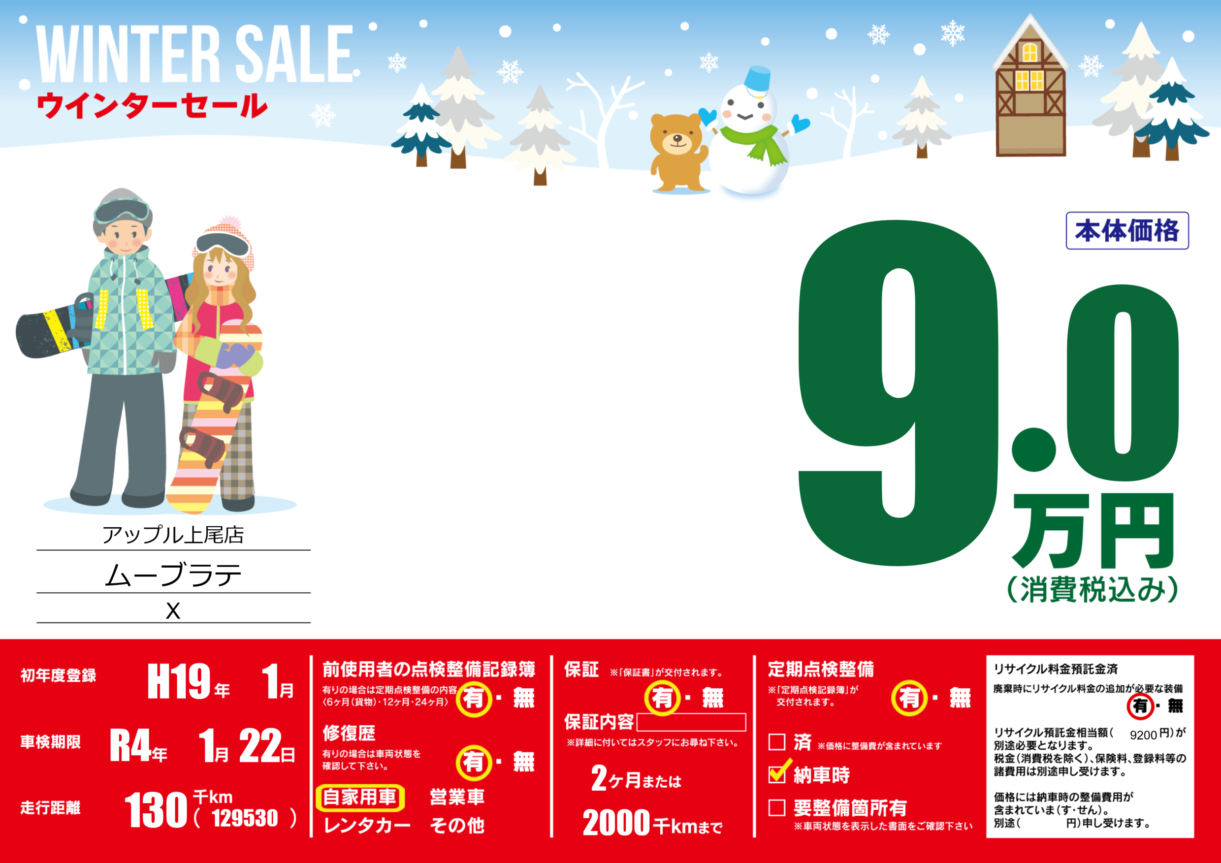 | 走行キロ | 13万km | 初年度登録 | H19年1月 |