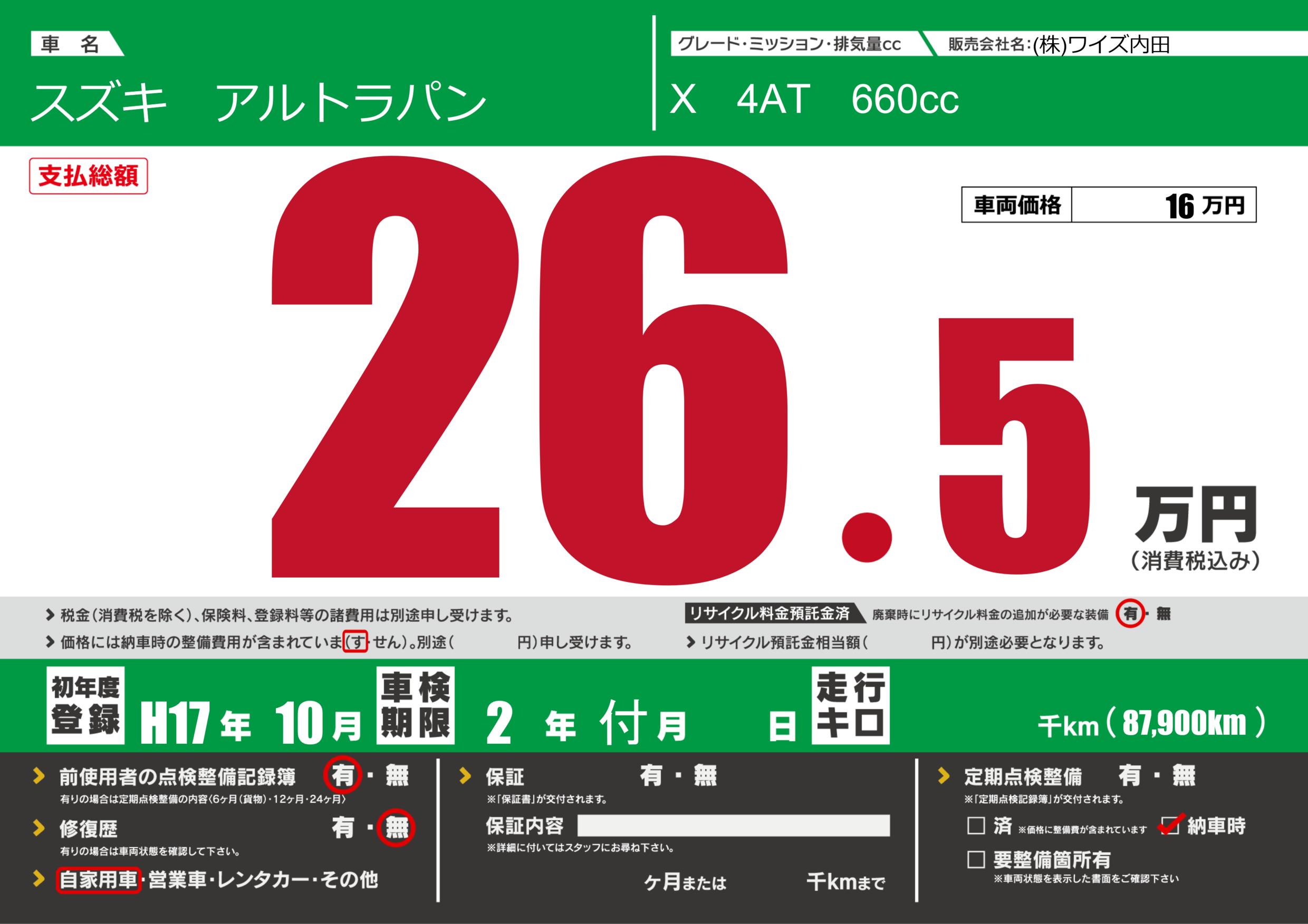 | 走行キロ | - | 初年度登録 | H17年10月 |